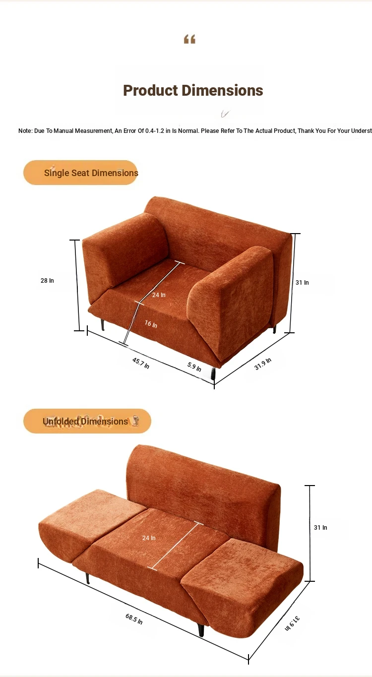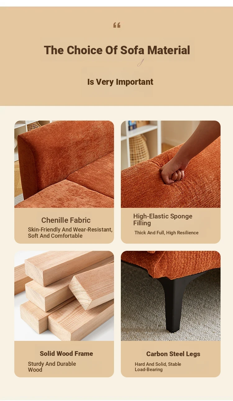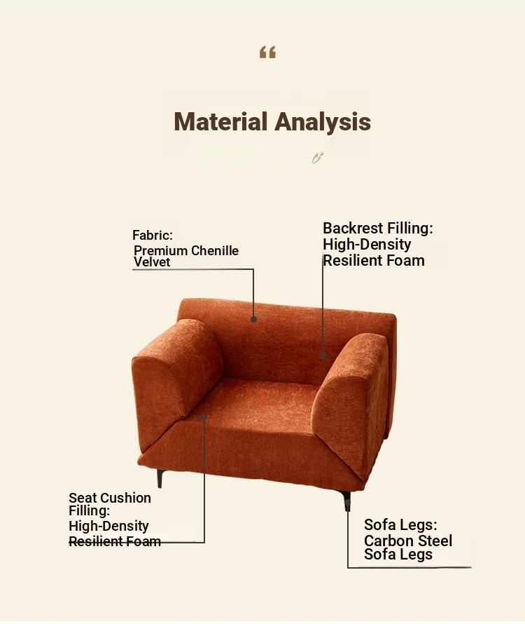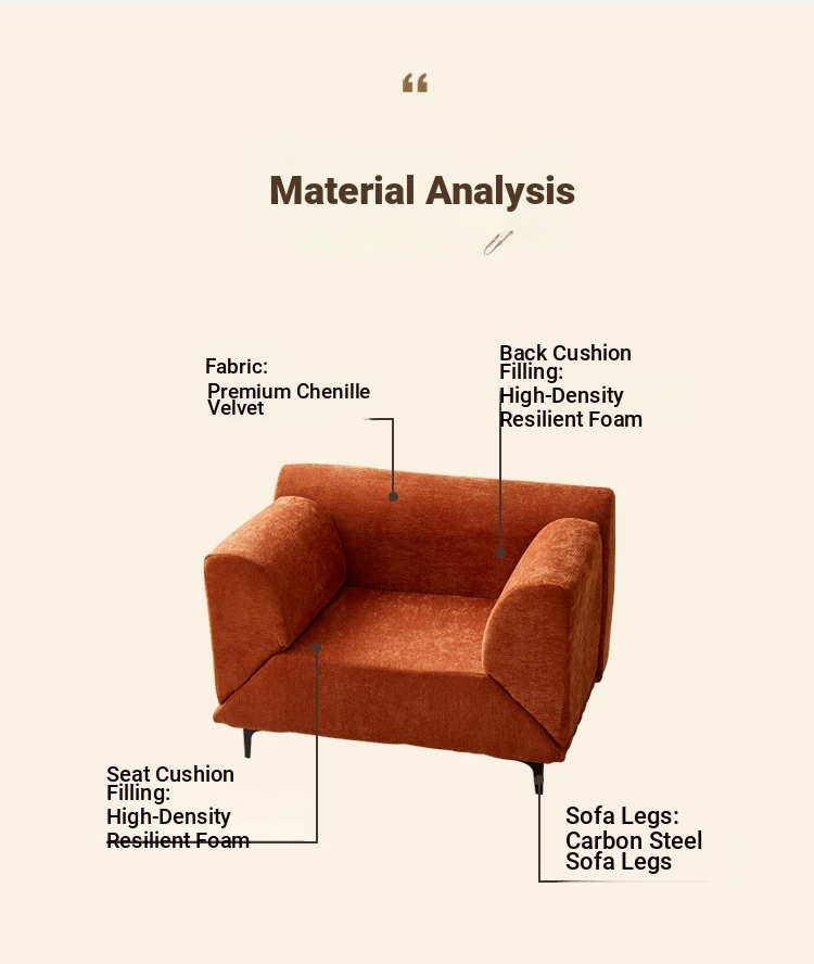 Eina Orange - Skin-Friendly Chenille Velvet [Fixed Armrests]