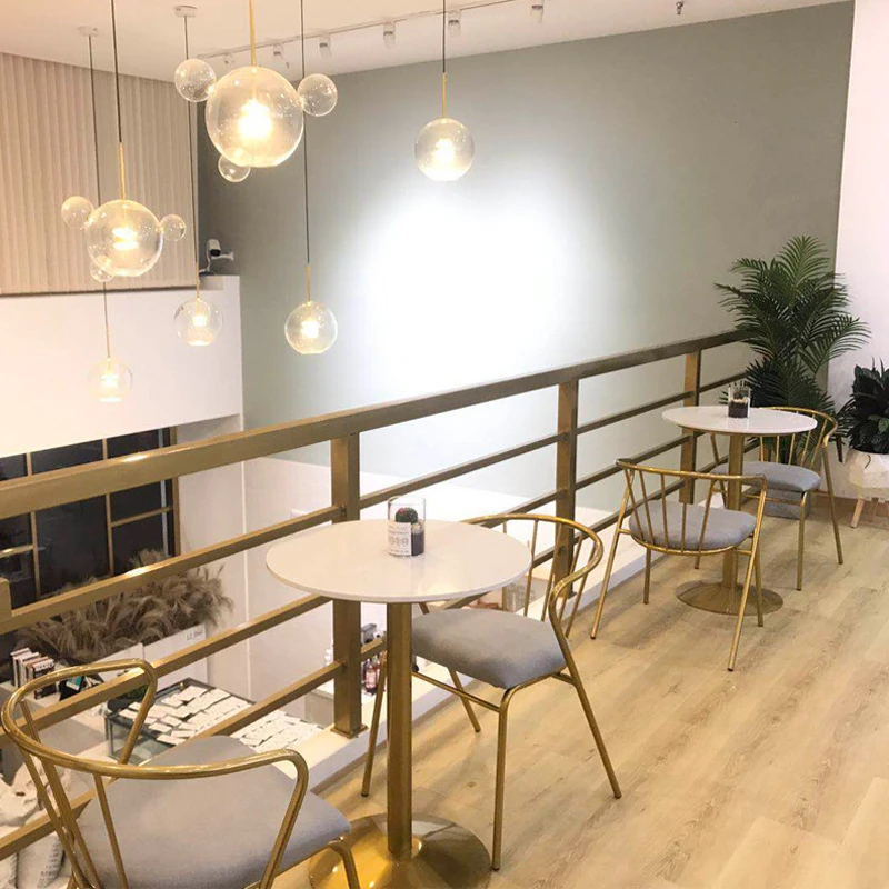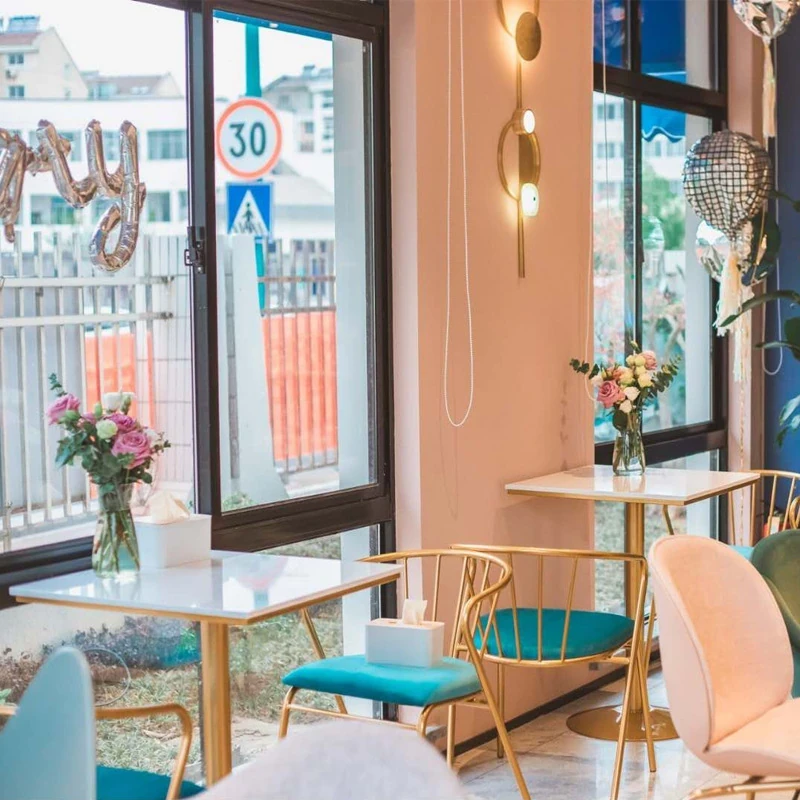 Nordic Marble Dining Table and Chair Set - Elegant Tea and Dessert Lounge Furniture with Stylish Iron Sofa Chairs for Relaxed Conversations