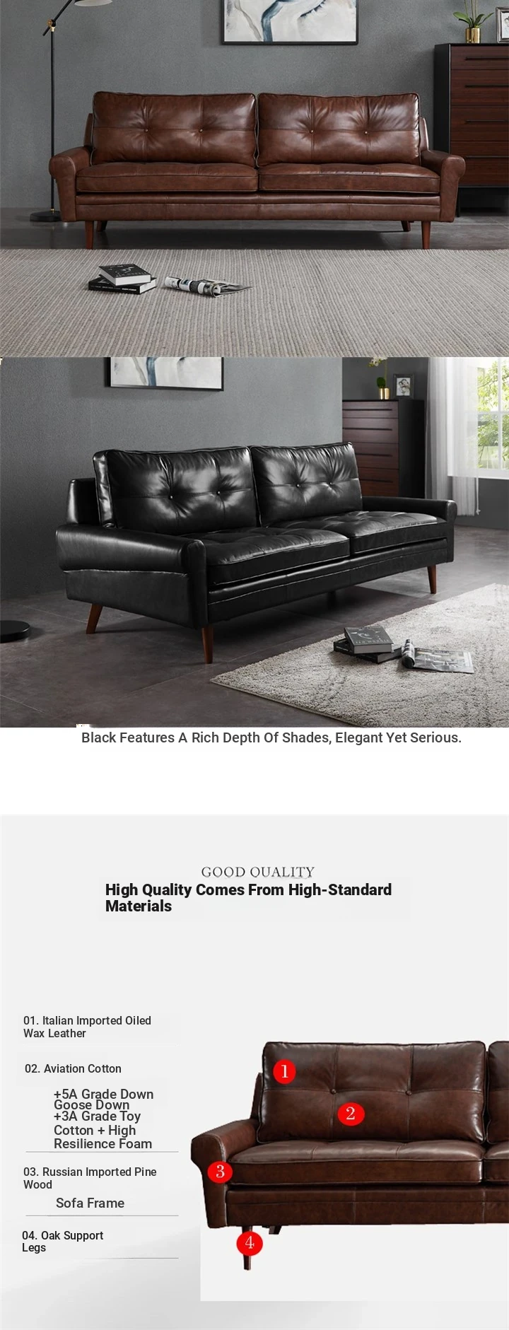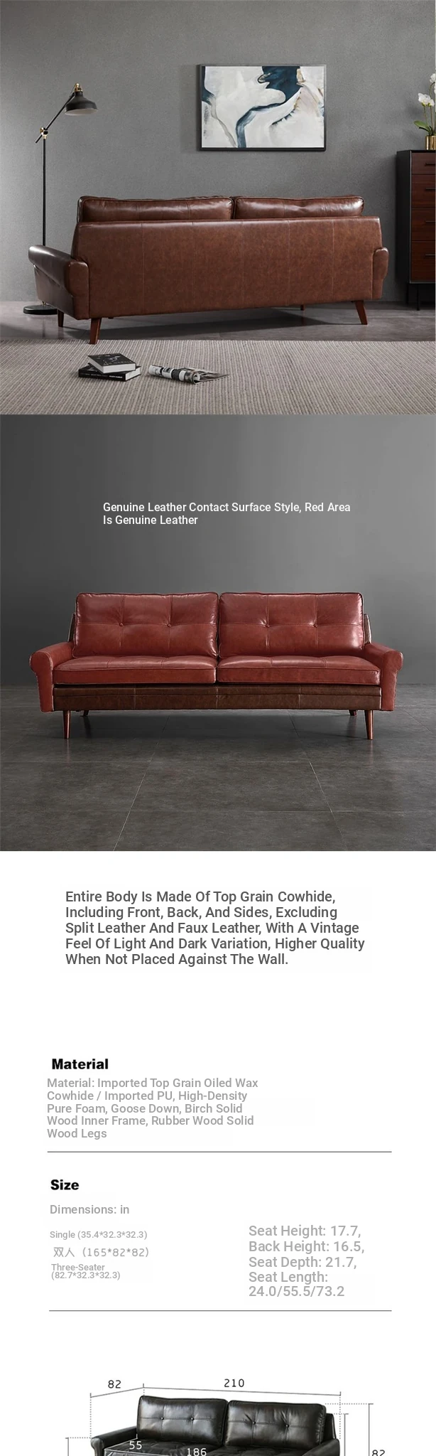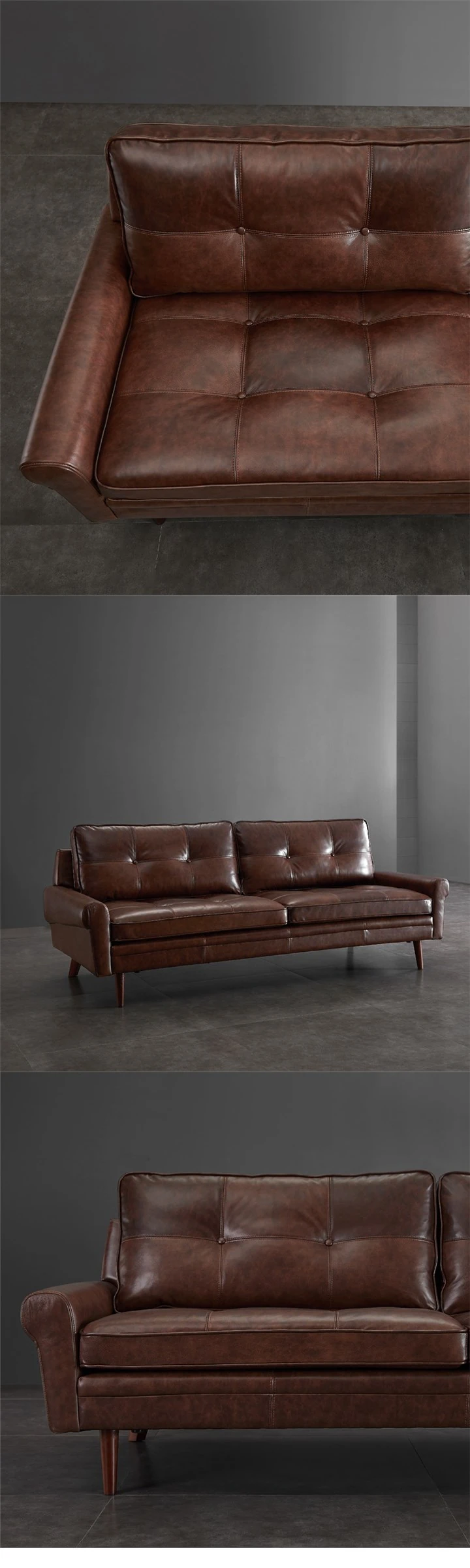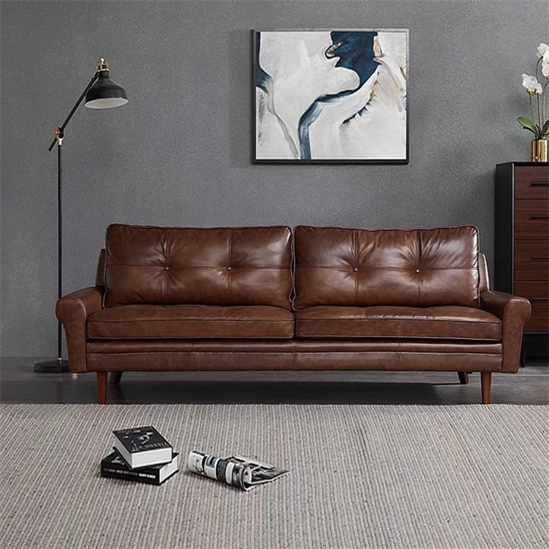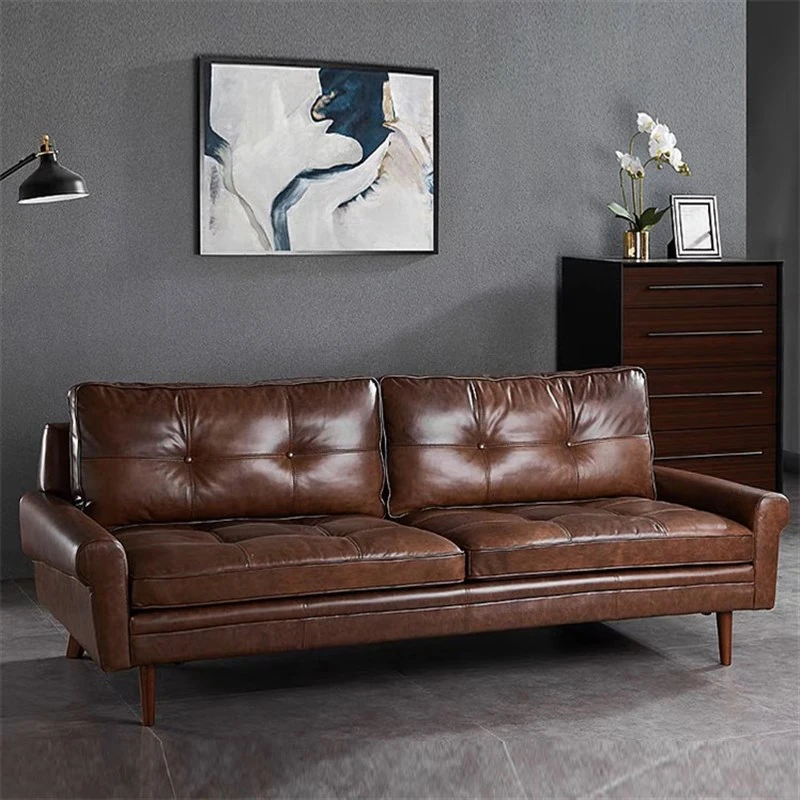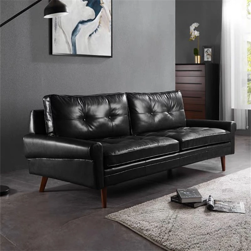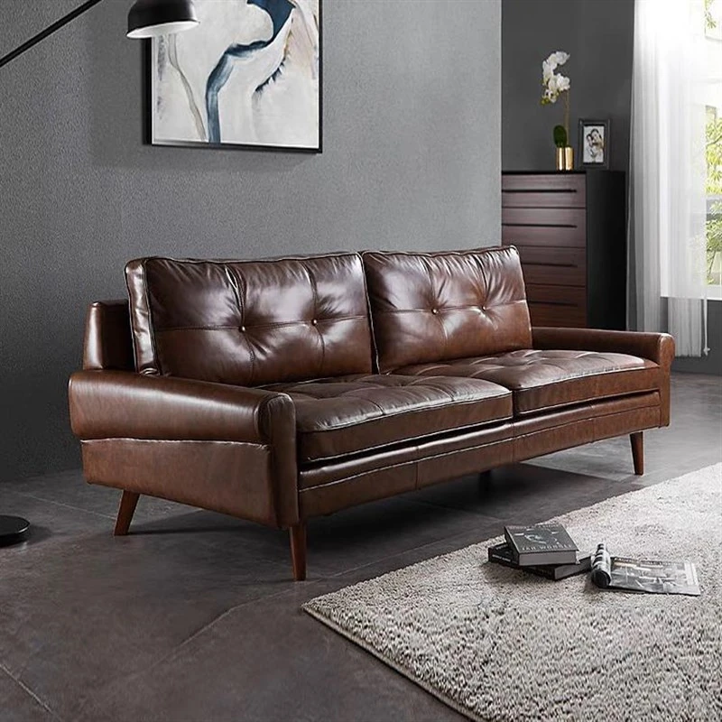 Nordic Minimalist Retro Genuine Top Layer Leather Sofa - Modern Industrial Style Three-Seat Couch for Small Spaces, Perfect for Your Living Room