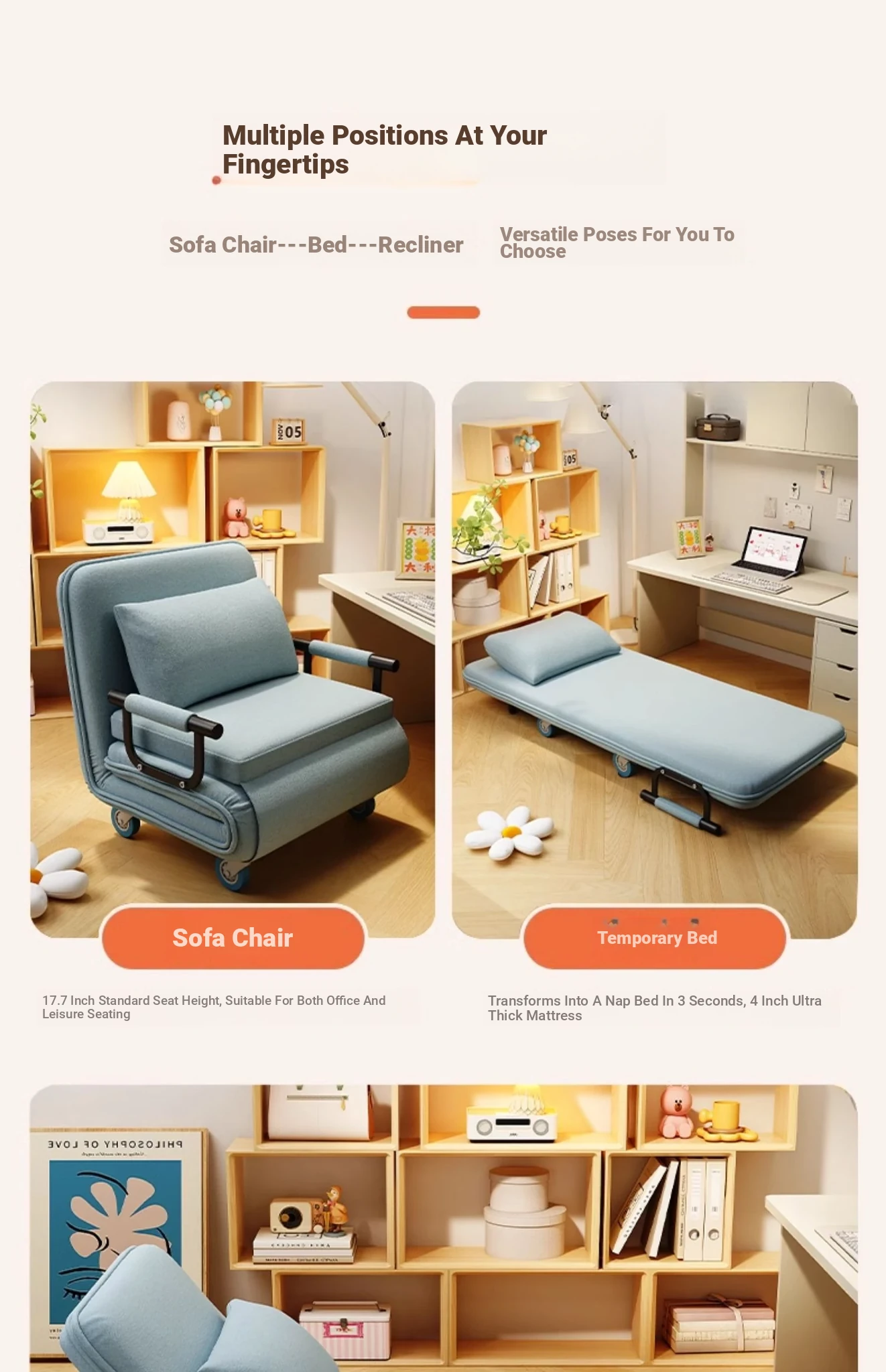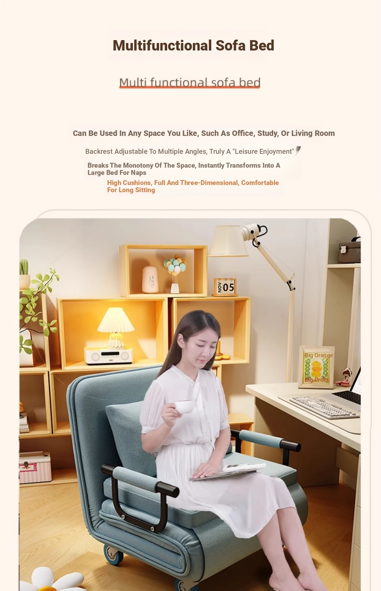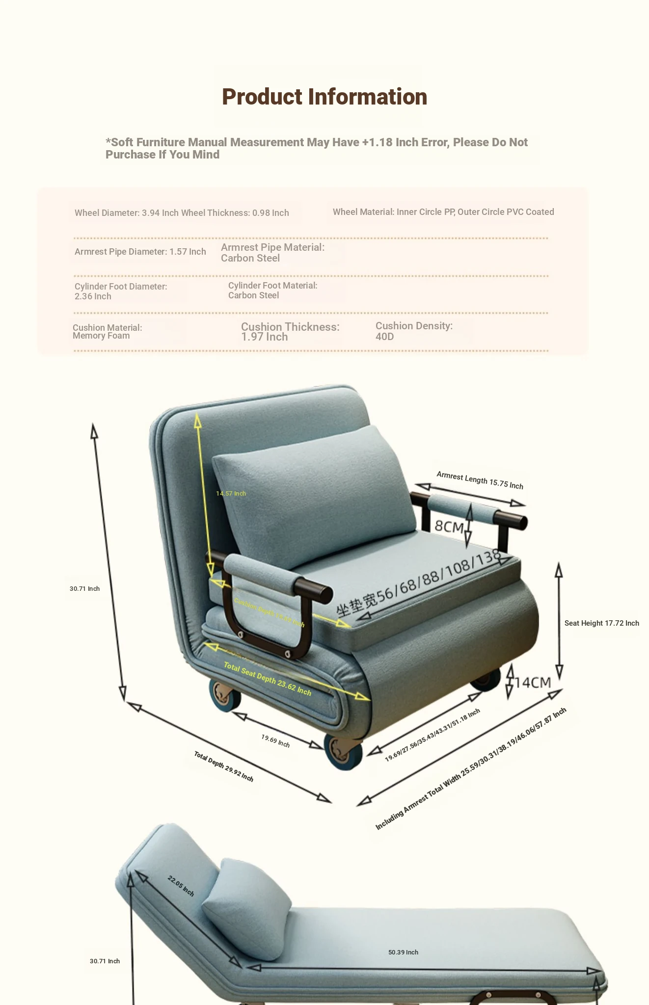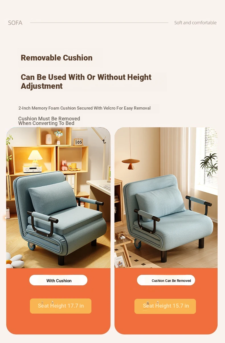 Ouleitman Folding Sofa Bed - 1.2m & 1.5m Compact, Stylish Couch for Small Spaces, Ideal for Study Rooms, Perfect for Singles and Couples, Soft Fabric Design for Ultimate Comfort