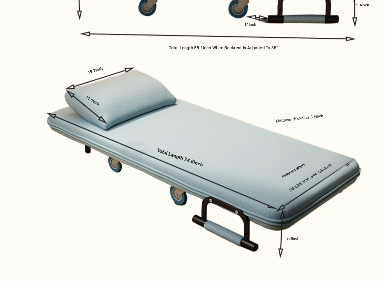 Shape 39.37 in 47 wide-four-wheeled feet-Lake Blue