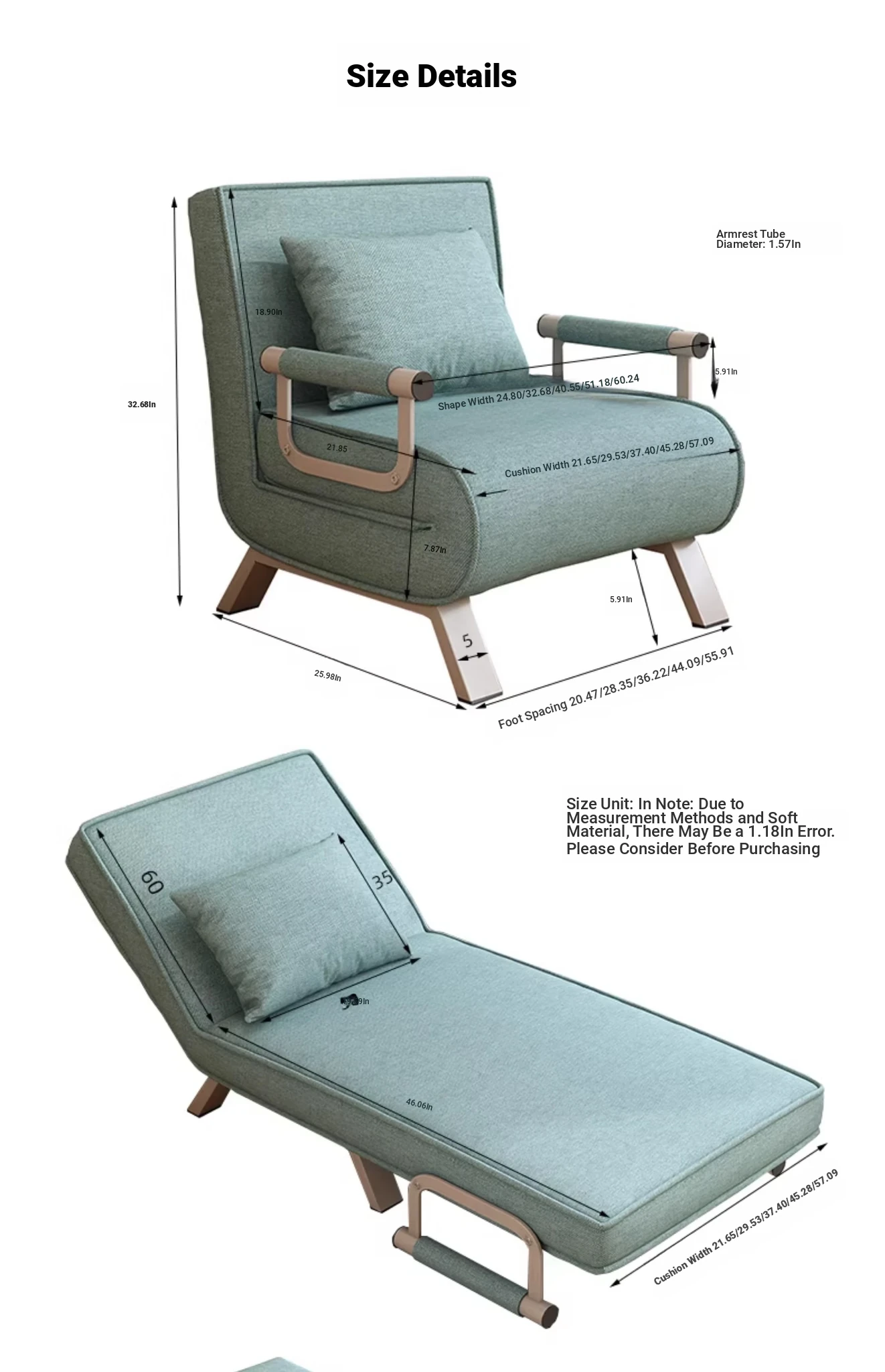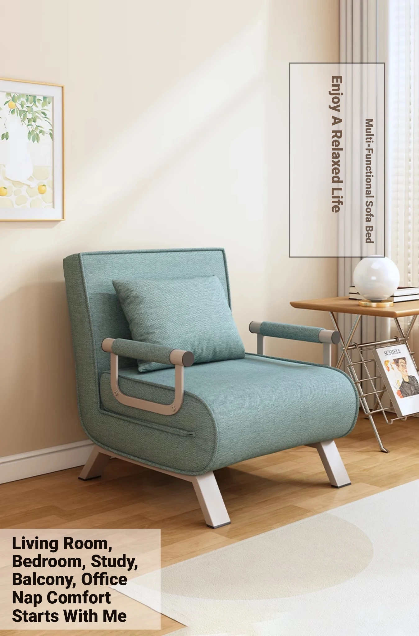 Ouleitman Lazy Sofa Bed - Multi-Functional Folding Sofa Chair for Single or Double Use, Perfect for Napping and Caregiving in a Minimalist Living Room