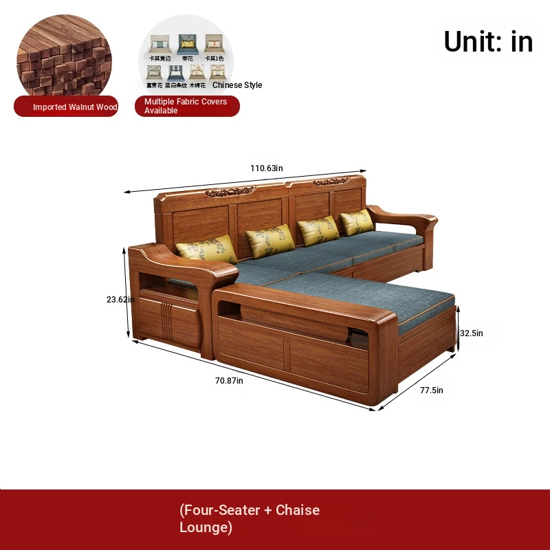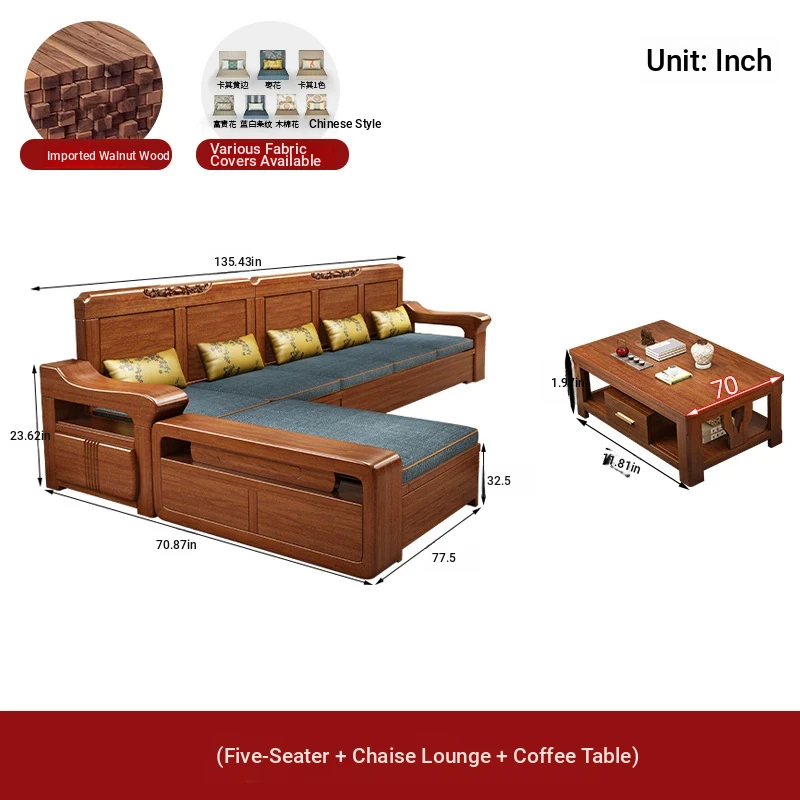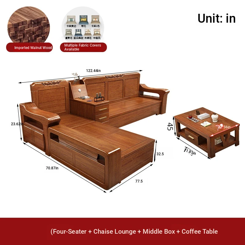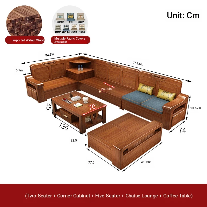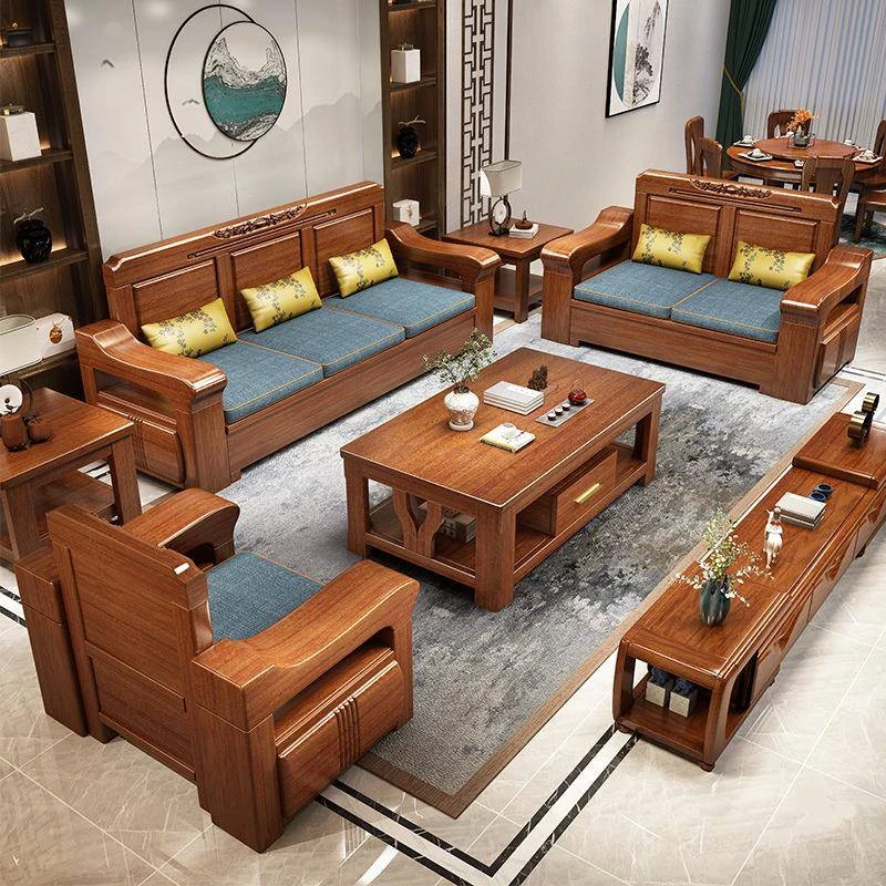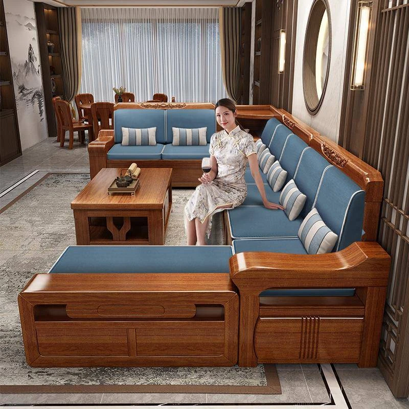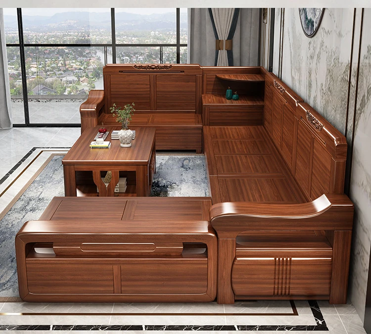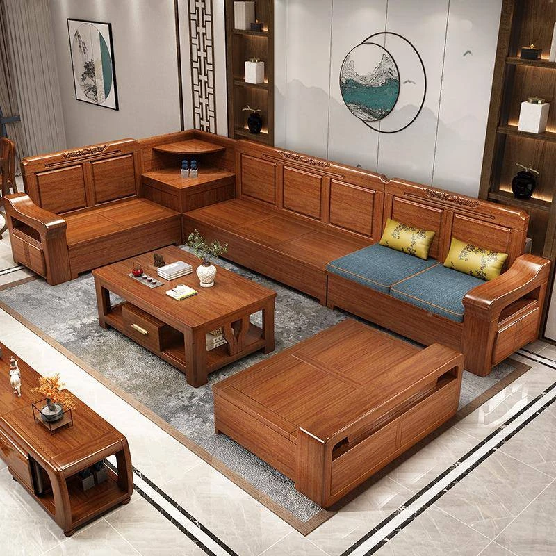 Peach Wood Sofa Set YM-21042 - Stylish Solid Wood Corner Storage Furniture for Small Spaces, Perfect for Modern Living Rooms