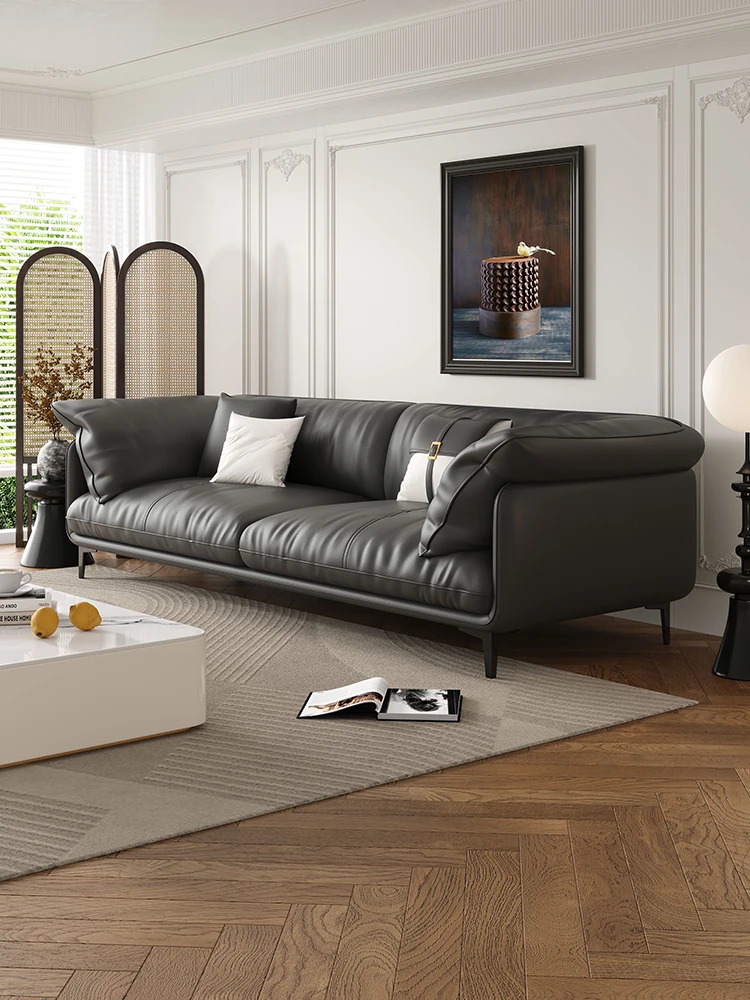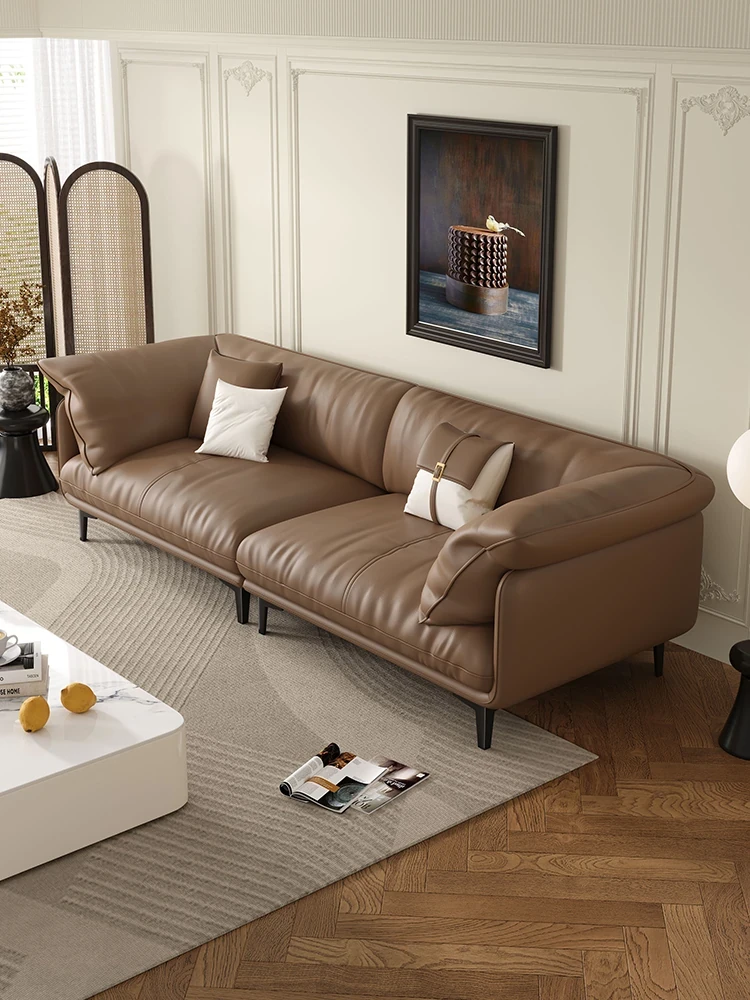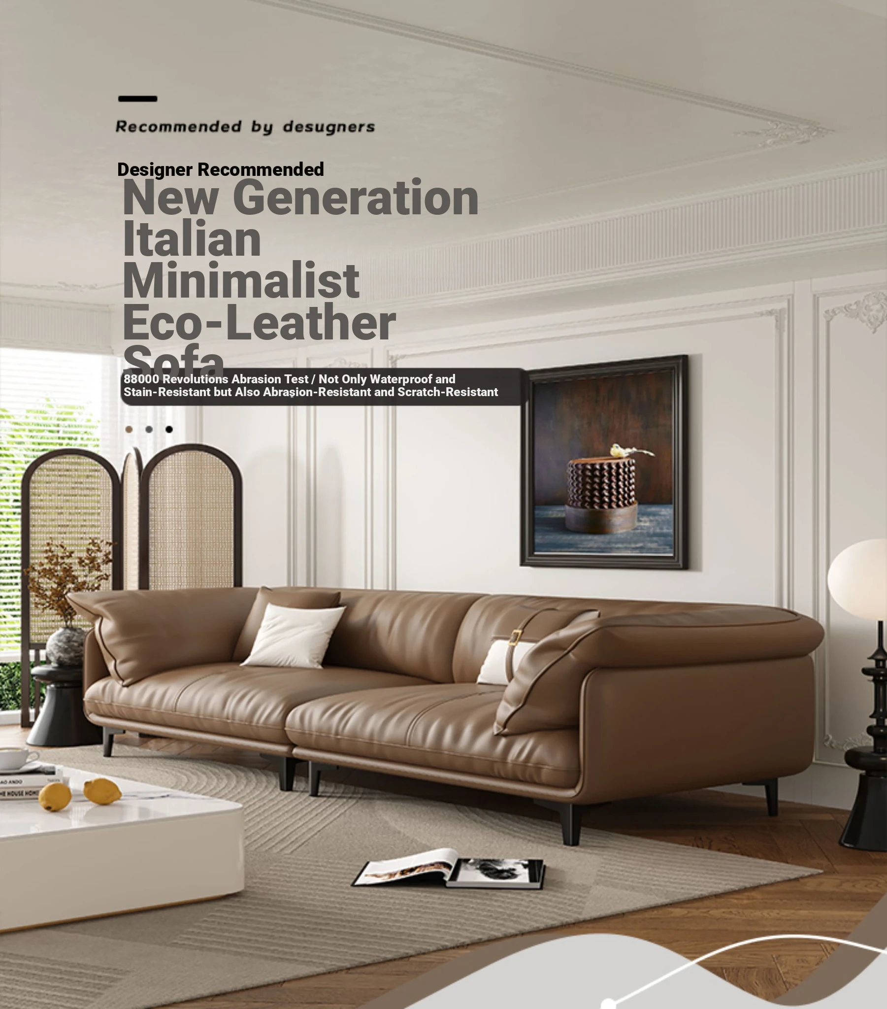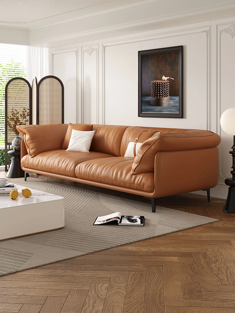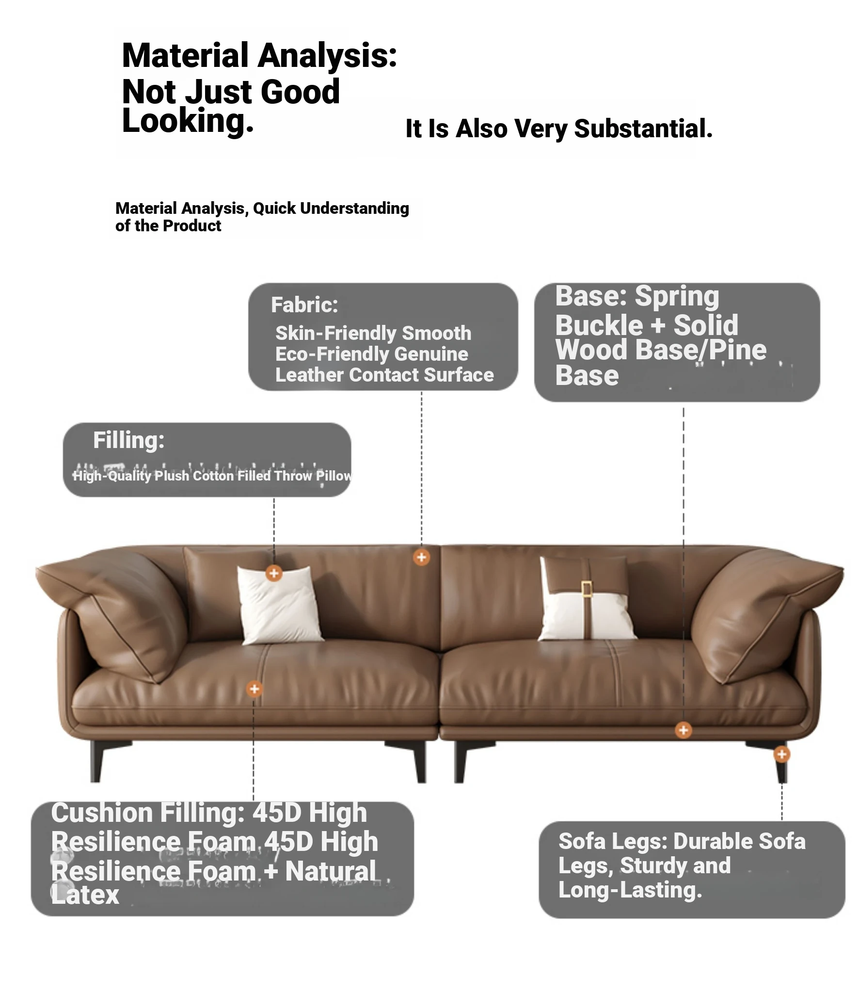 Retro Italian Minimalist Sofa - Luxurious Eco-Leather Couch with High-Density Foam for Living Room, Perfect for Small to Medium Spaces, Elegant Design for Modern Homes.