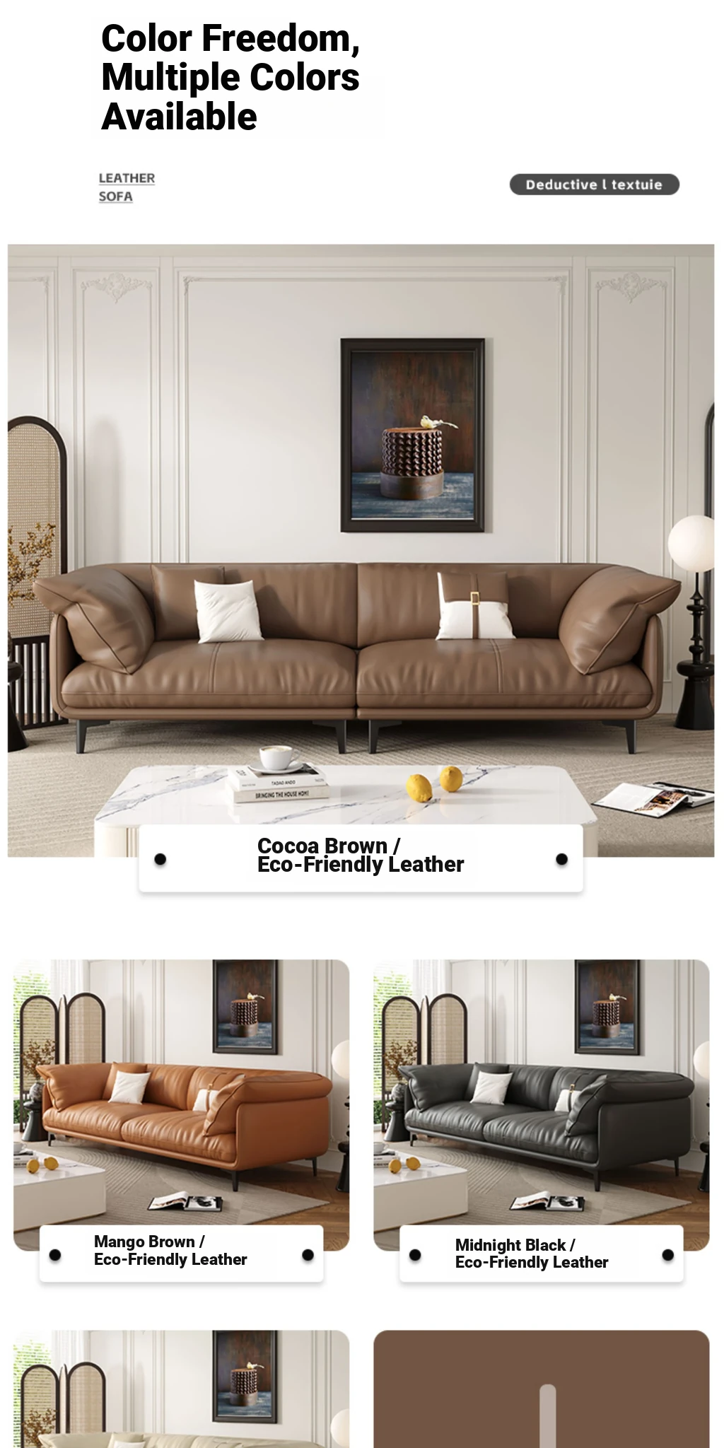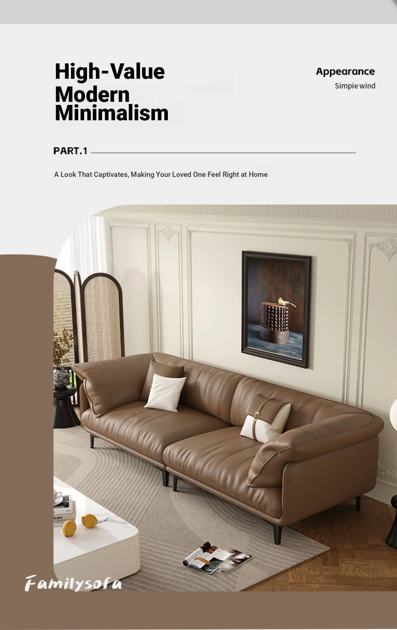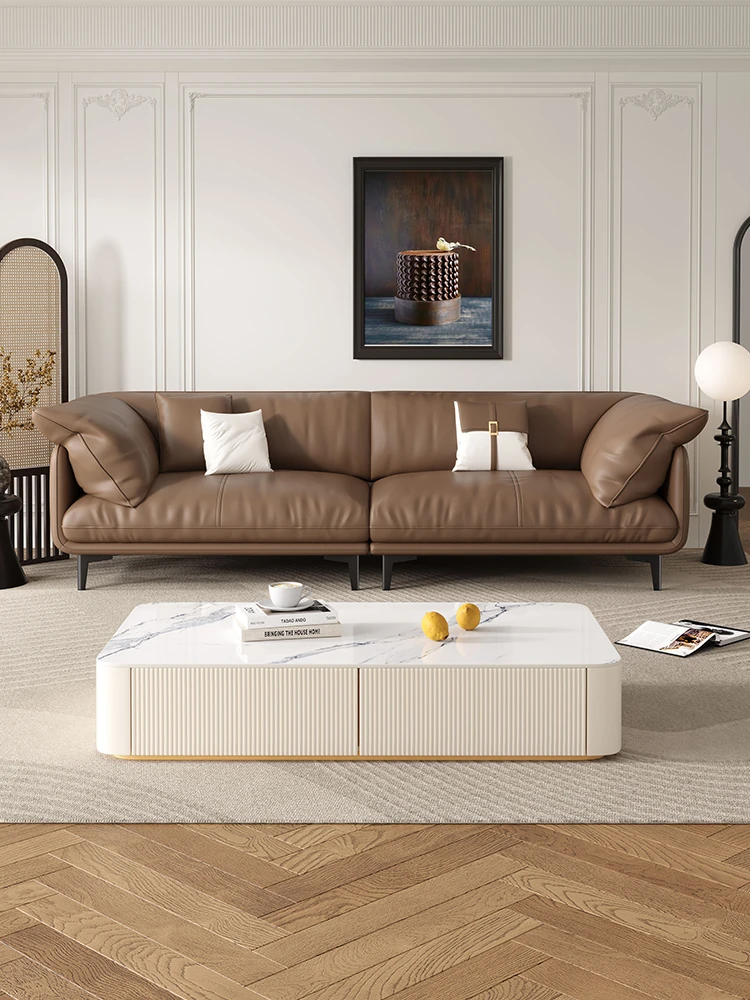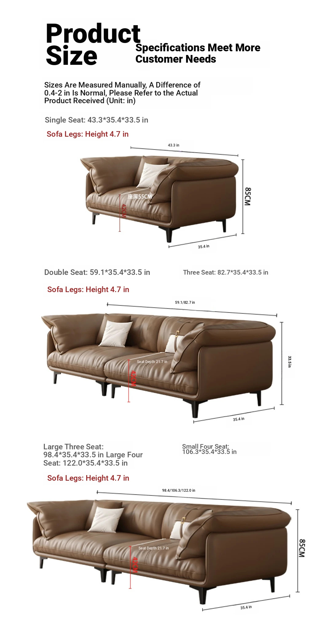 Retro Italian Minimalist Sofa - Luxurious Eco-Leather Couch with High-Density Foam for Living Room, Perfect for Small to Medium Spaces, Elegant Design for Modern Homes.