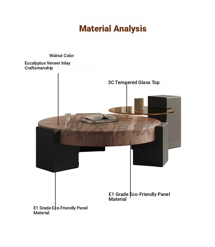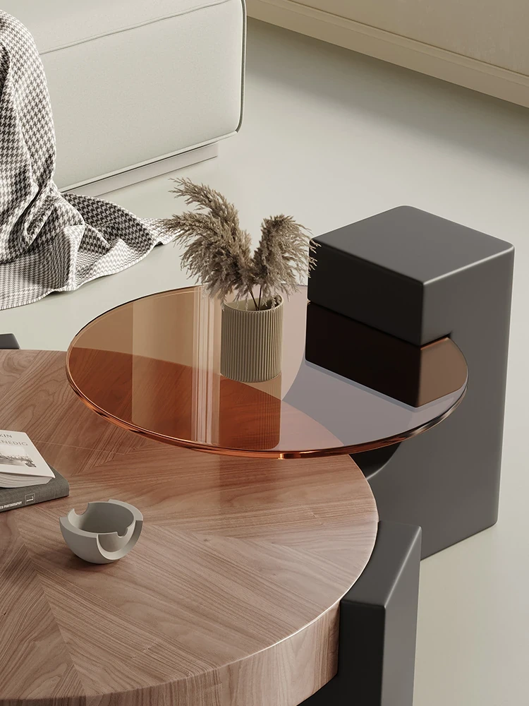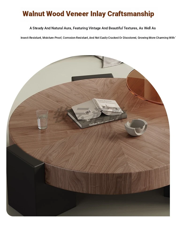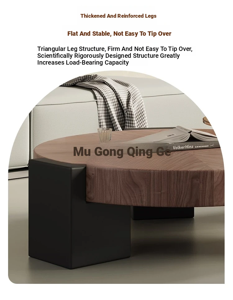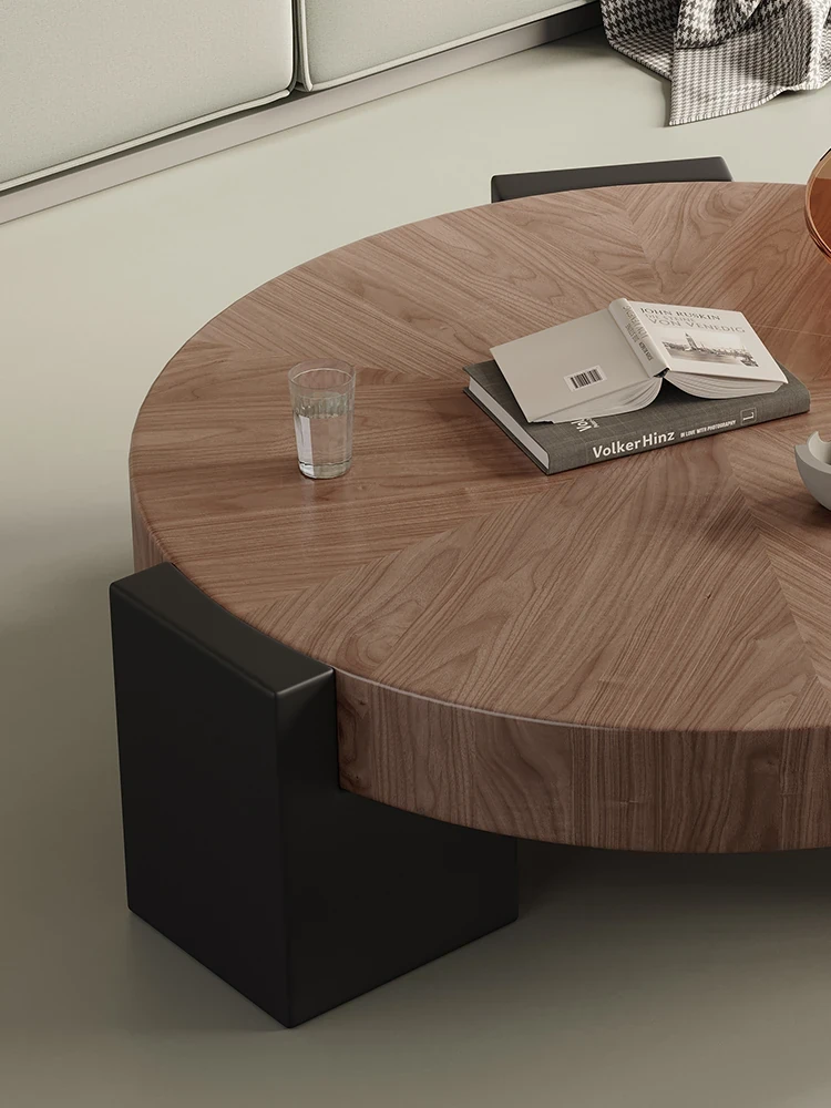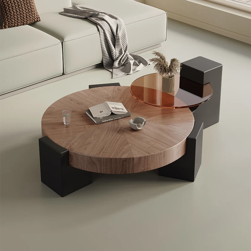 Rustic Round Coffee Table Set - Creative Solid Walnut Wood Design for Minimalist Living Rooms and Small Spaces - Perfect for Modern Home Aesthetics