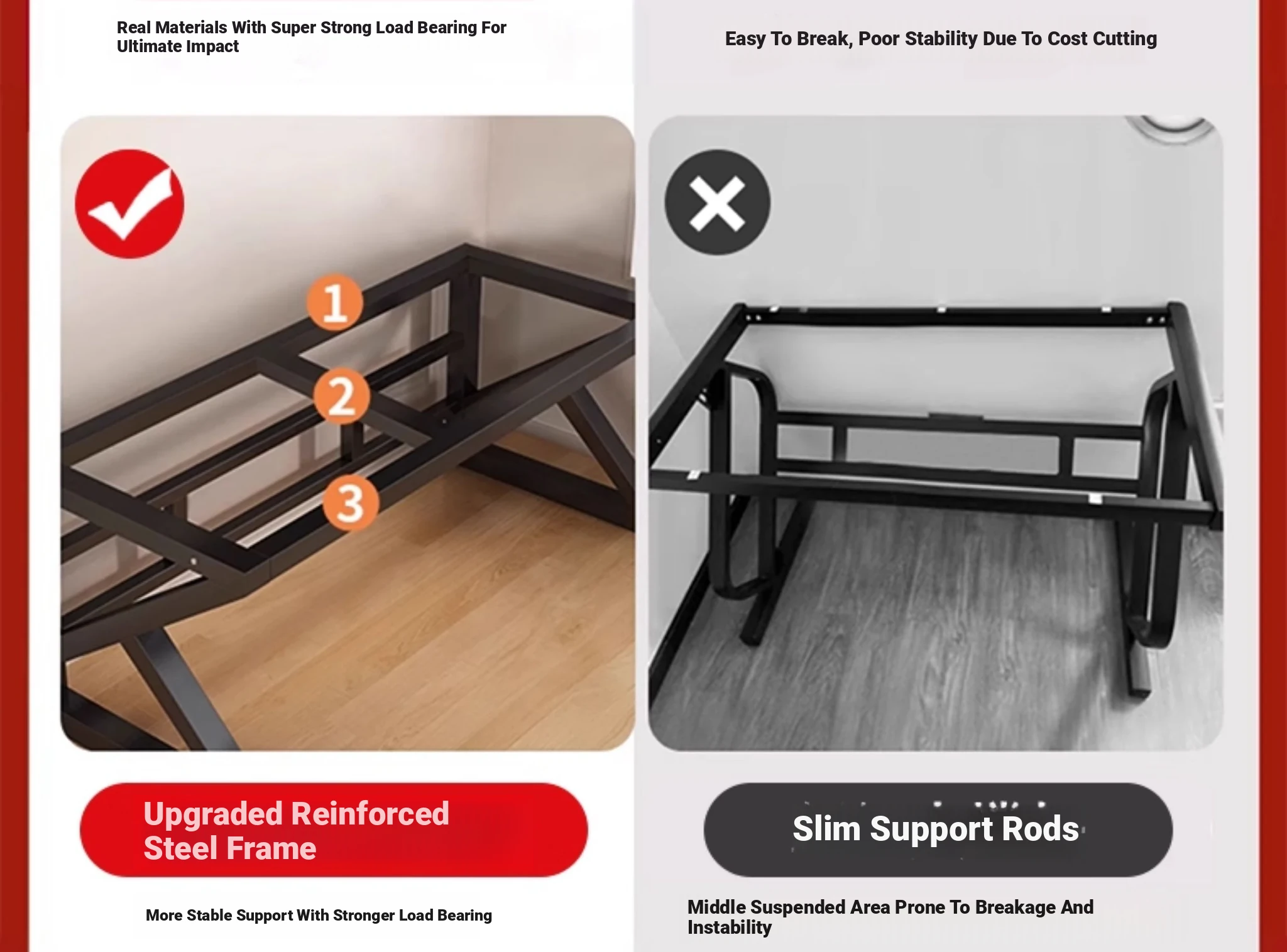 Black + Black Frame [Enhanced Version 0.63in Thick] All Solid Wood Structure + Upgraded Reinforced Horizontal Bars