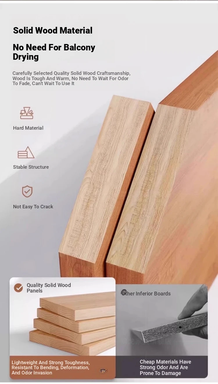 Wood Color + Black Frame [Enhanced Version 0.63in Thick] All Solid Wood Structure + Upgraded Reinforced Horizontal Bars