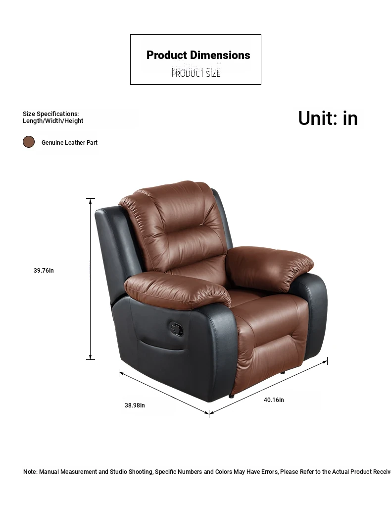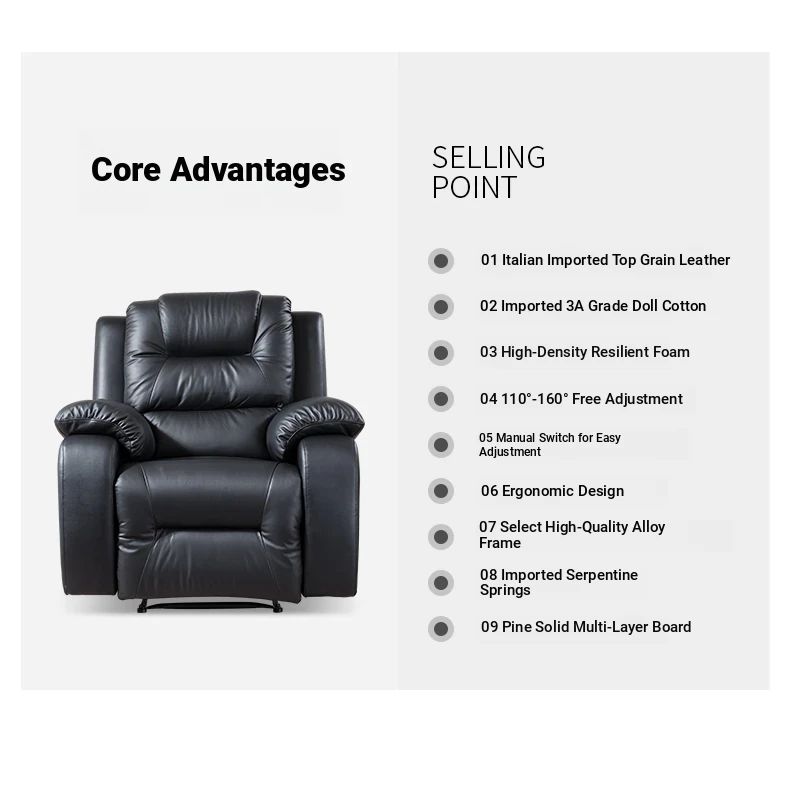 St. Orlan Luxury Space Ultra-Soft Electric Recliner Chair - Single Seat Genuine Leather Sofa for Bedroom and Living Room