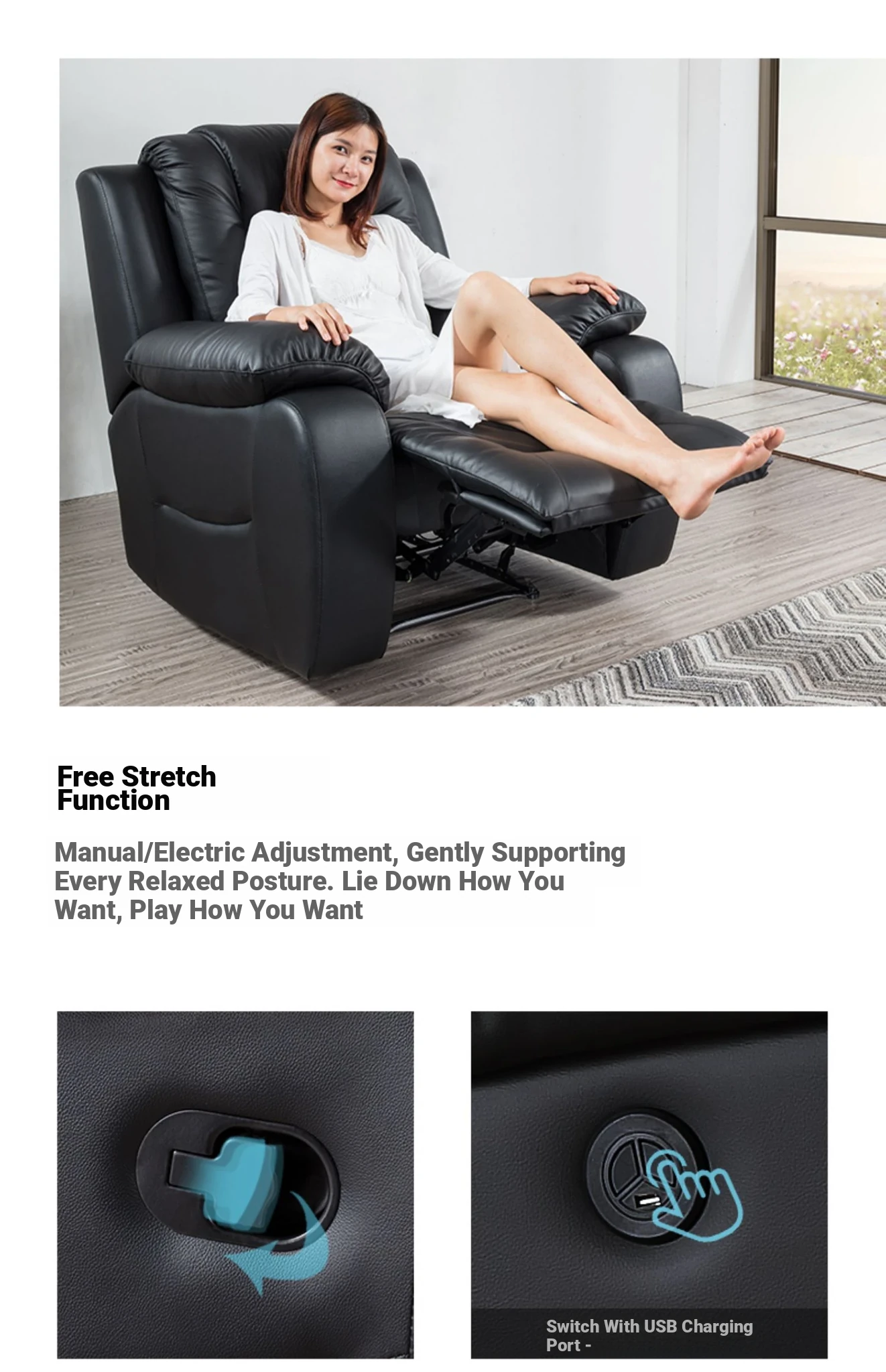 Electric upgrade version (foot stretch + lying + USB mobile phone charging)