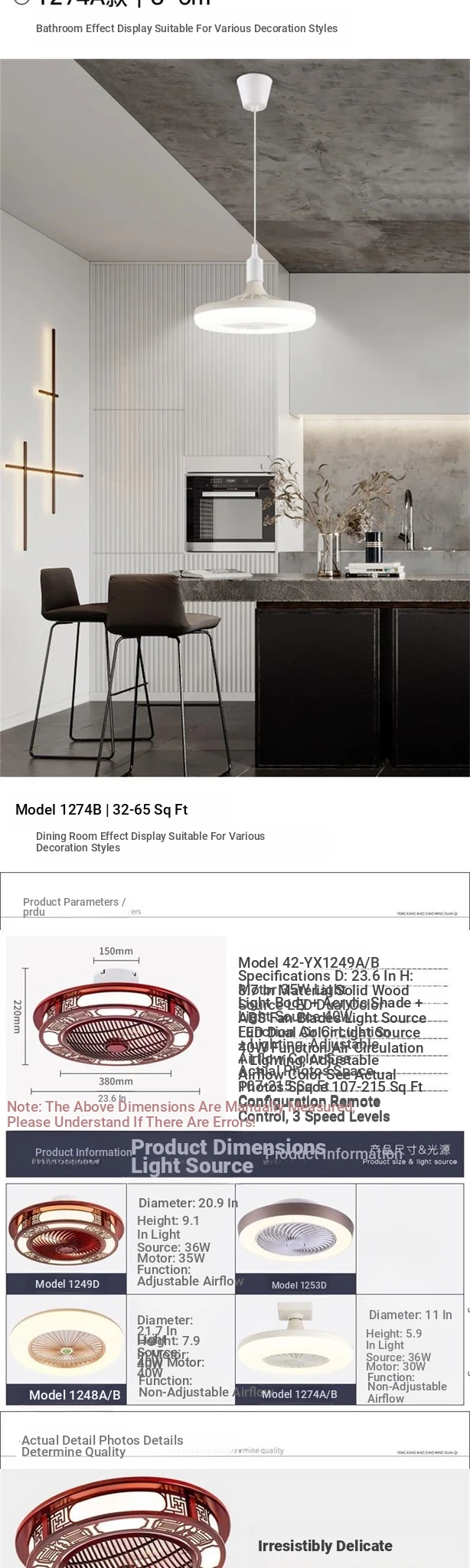 1249A auspicious 23.62in-variable light remote control