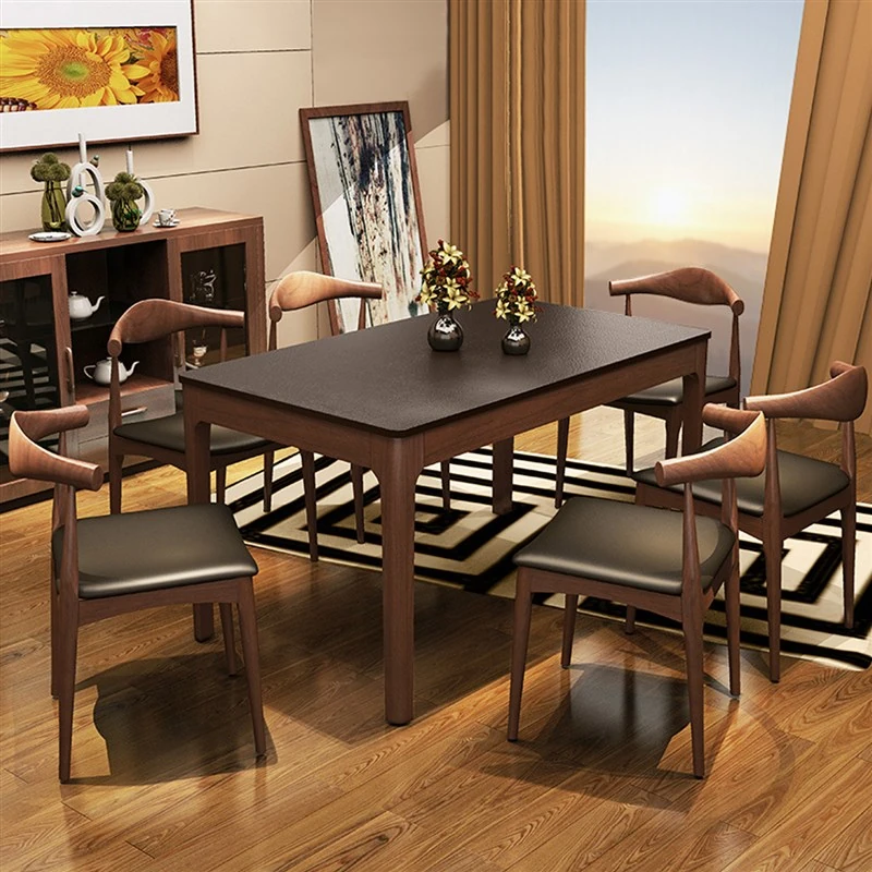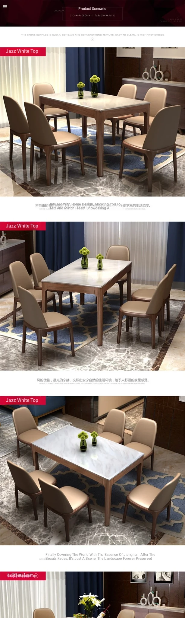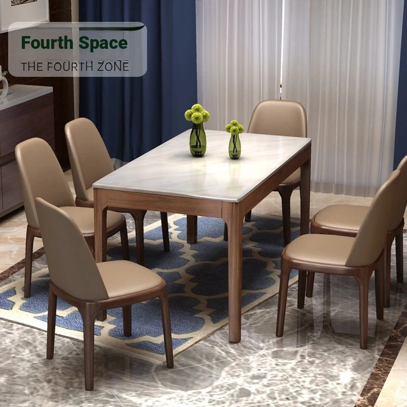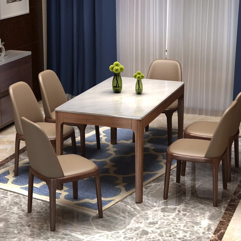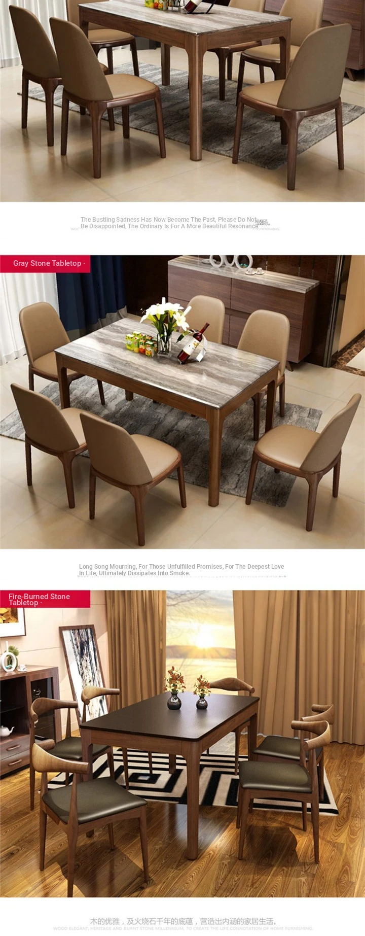 Stylish Nordic Marble Dining Table Set - Modern Rectangular Fireproof Stone Table with Solid Wood Chairs for 6 People - Perfect for Elegant Dining Experiences