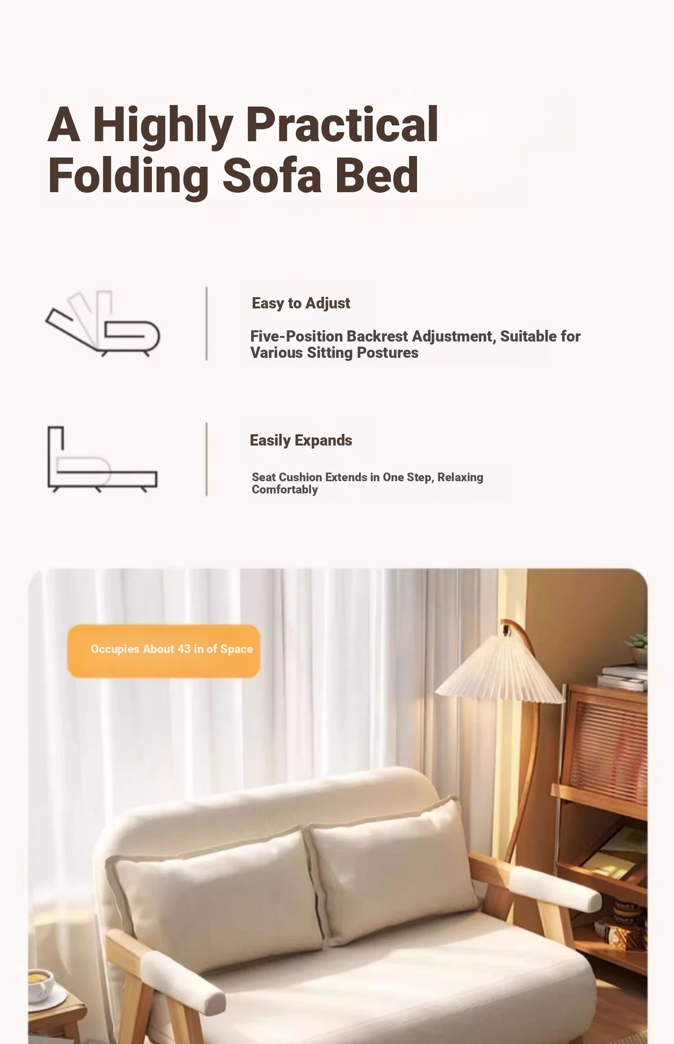 Versatile Foldable Sofa Bed for Small Spaces – Ideal for Lazy Days, Perfect for Singles or Couples – Expandable and Compact Design for Your Living Room!