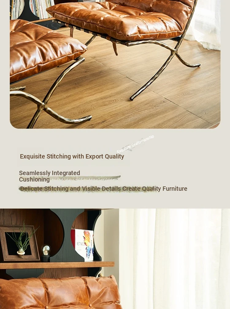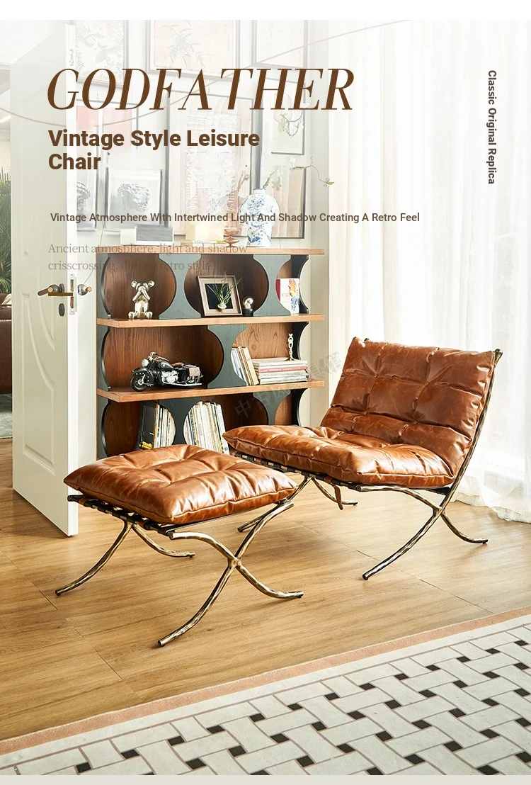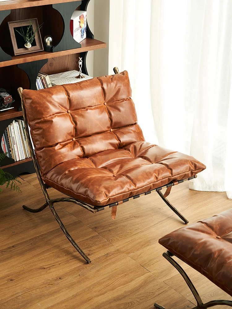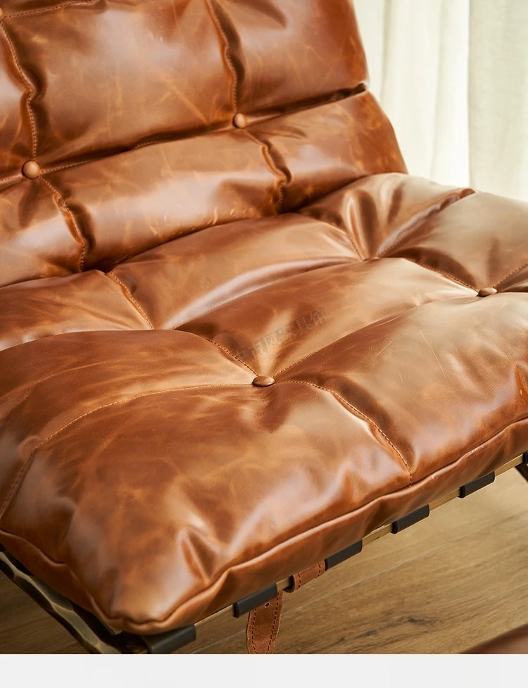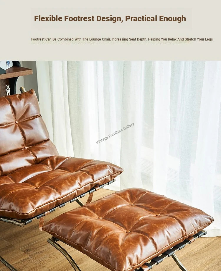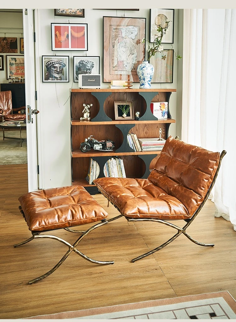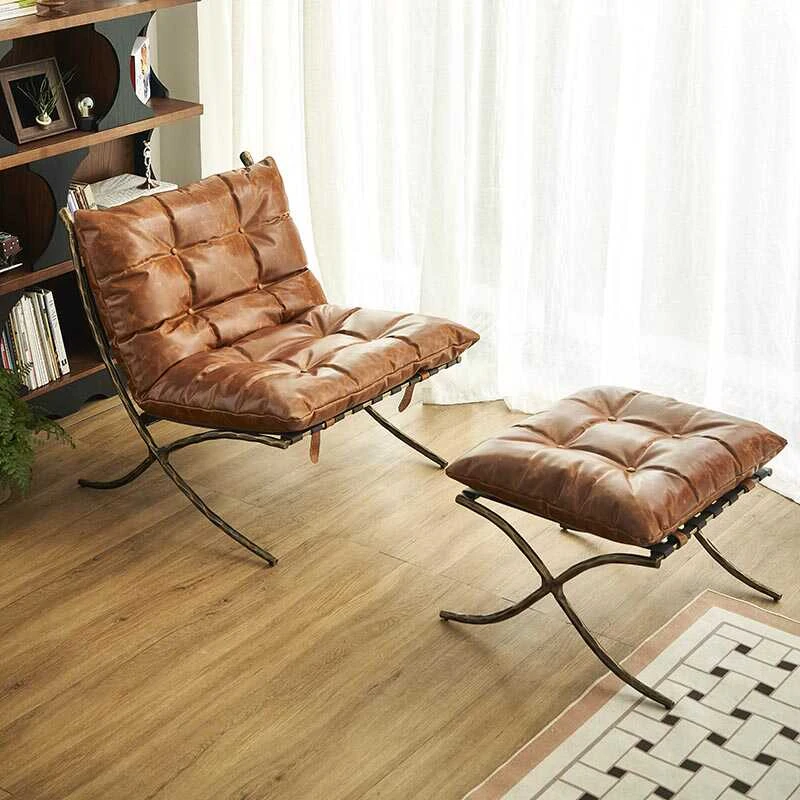 Vintage Barcelona Chair - Retro Oiled Leather and Wrought Iron Lounge Chair, Designer Recliner, Perfect for Stylish Living Spaces