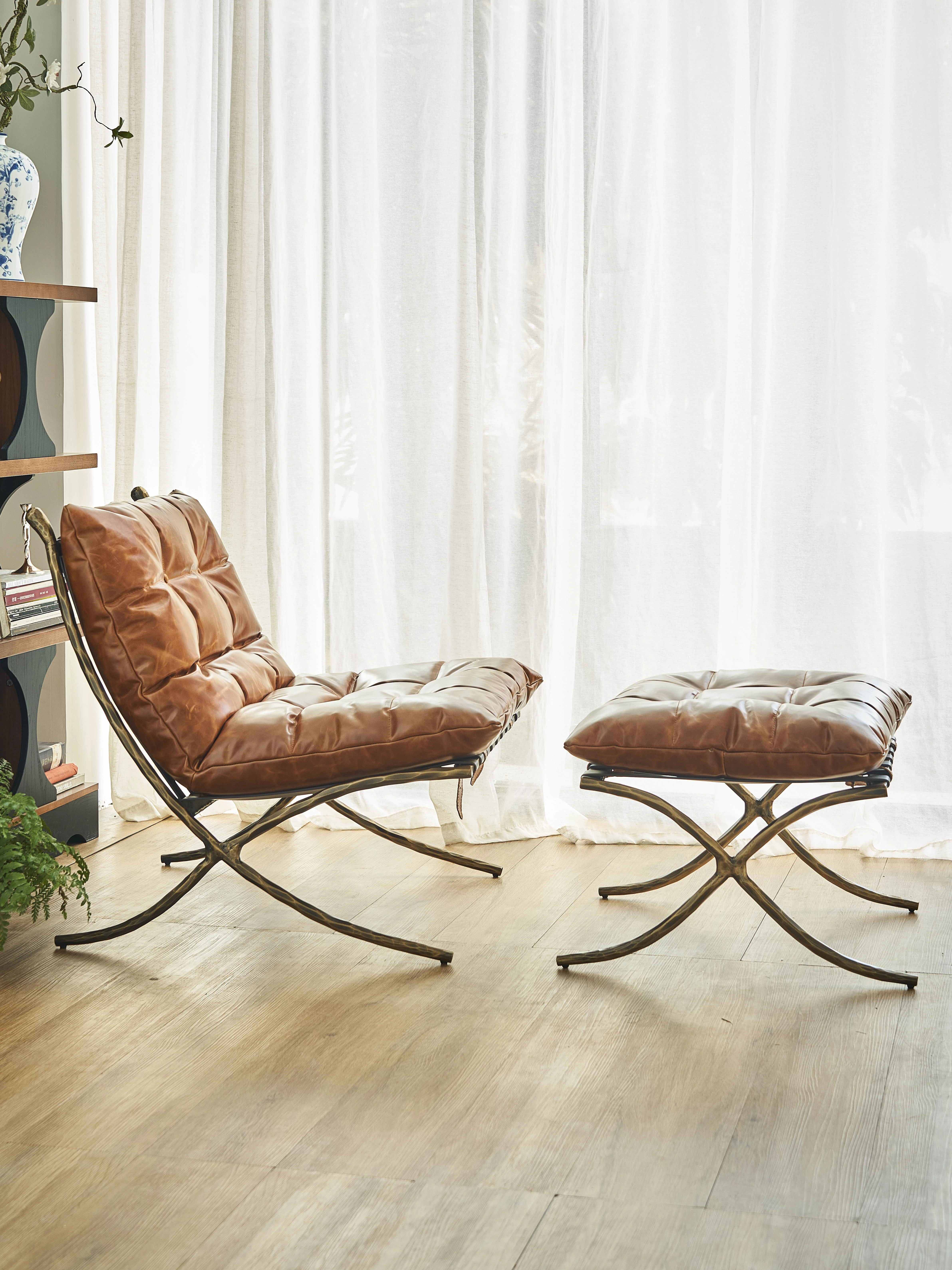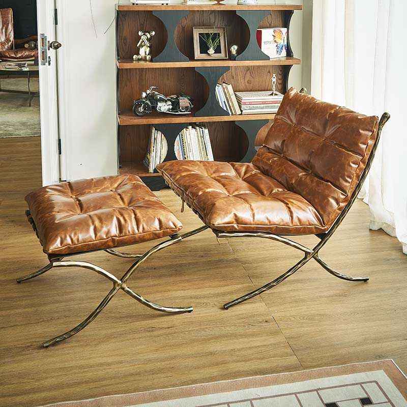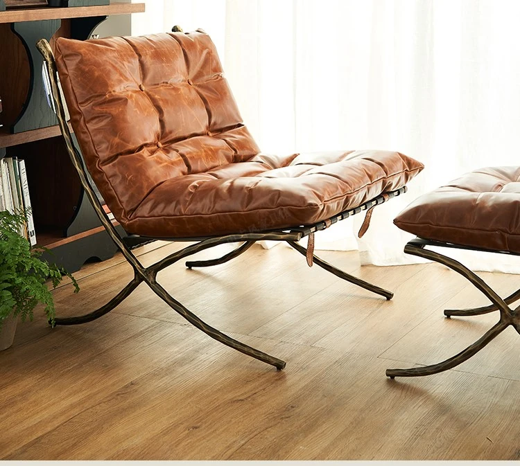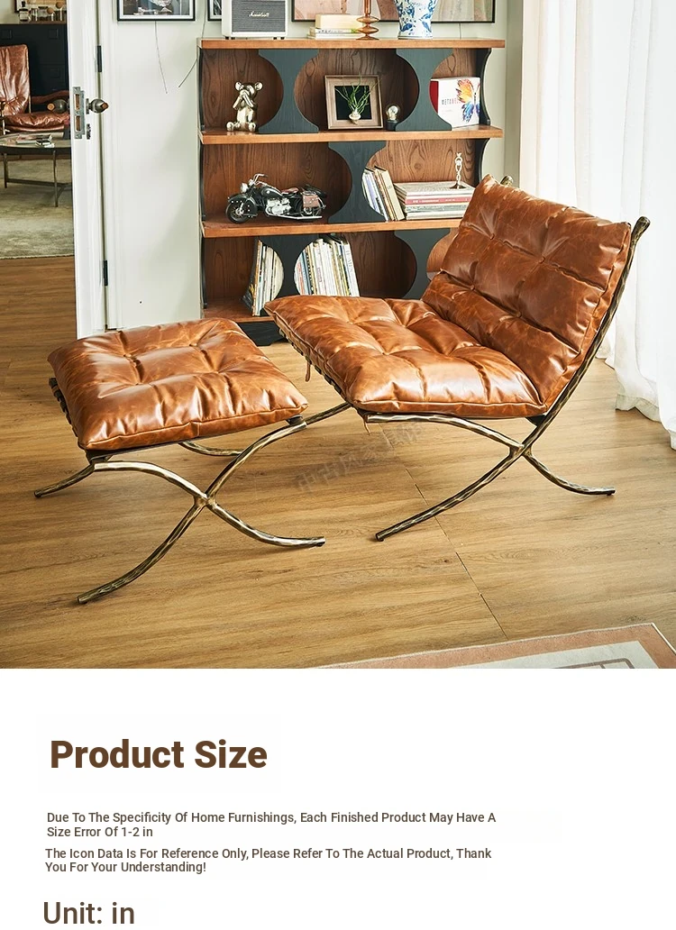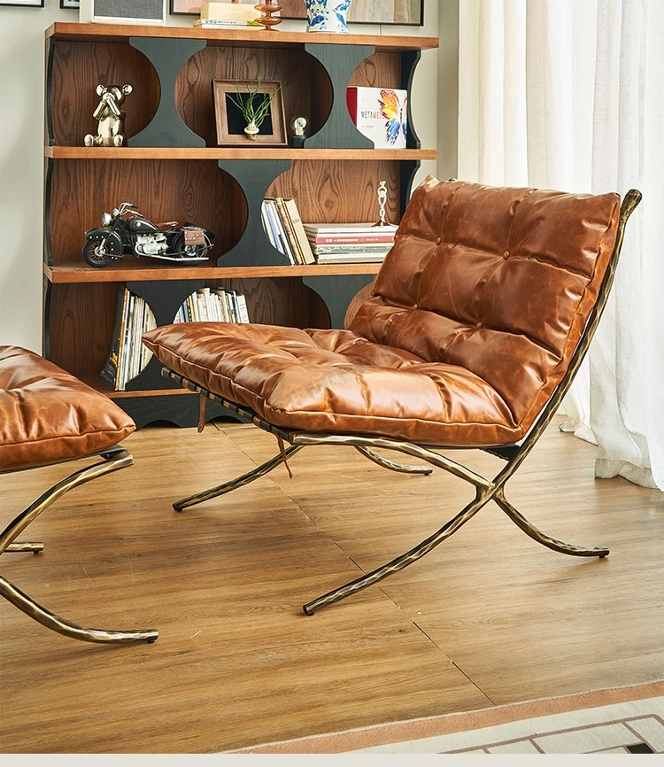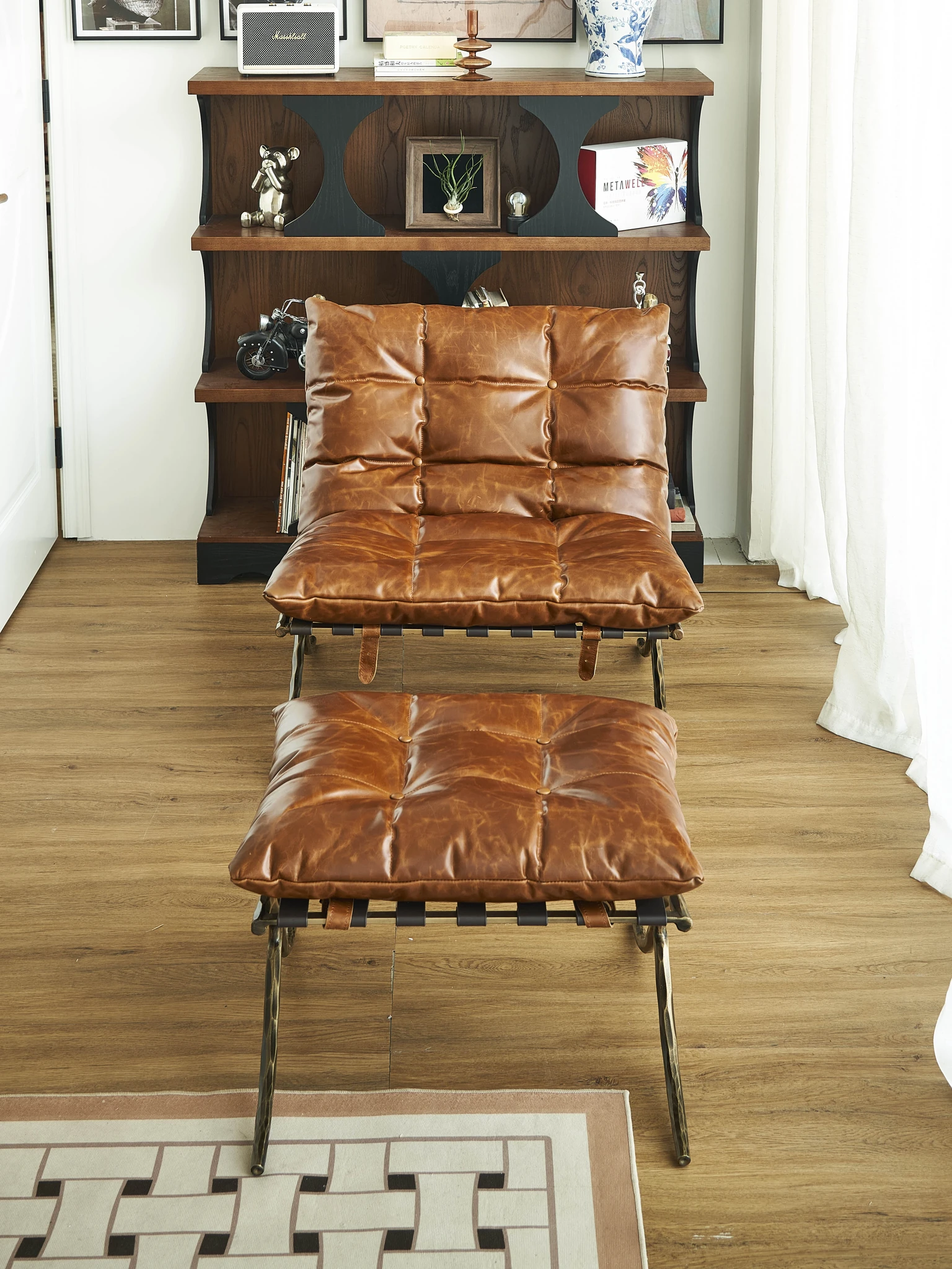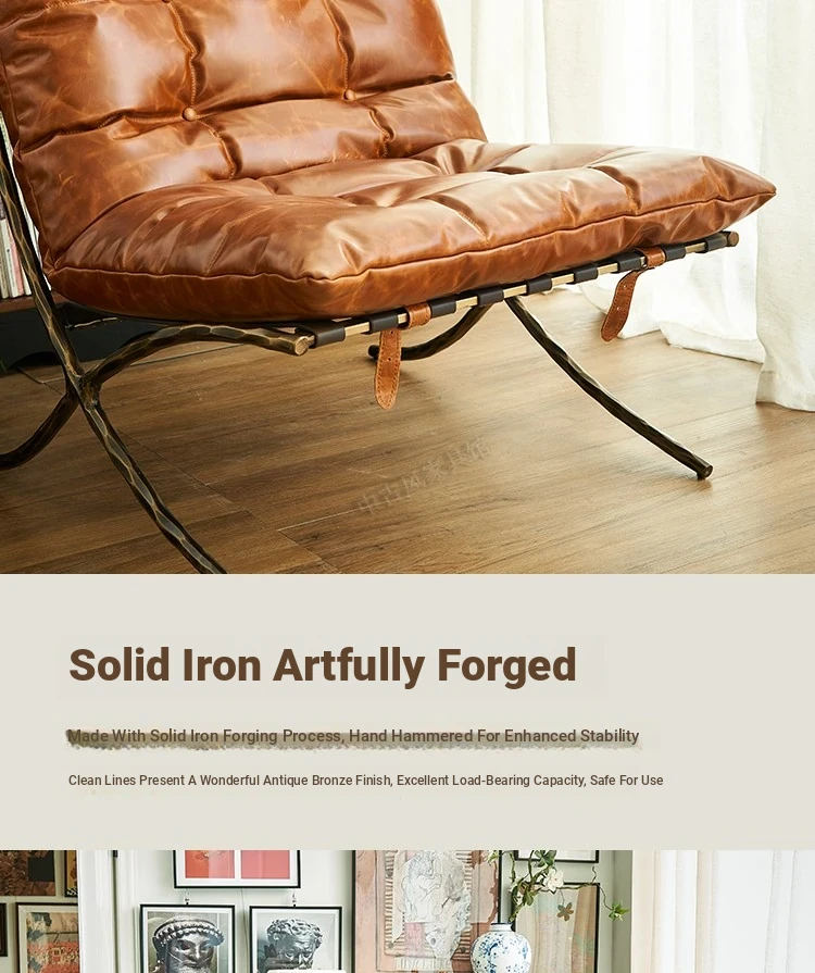 Vintage Barcelona Chair - Retro Oiled Leather and Wrought Iron Lounge Chair, Designer Recliner, Perfect for Stylish Living Spaces