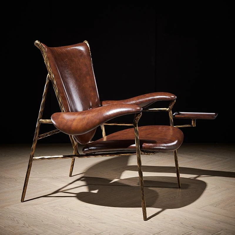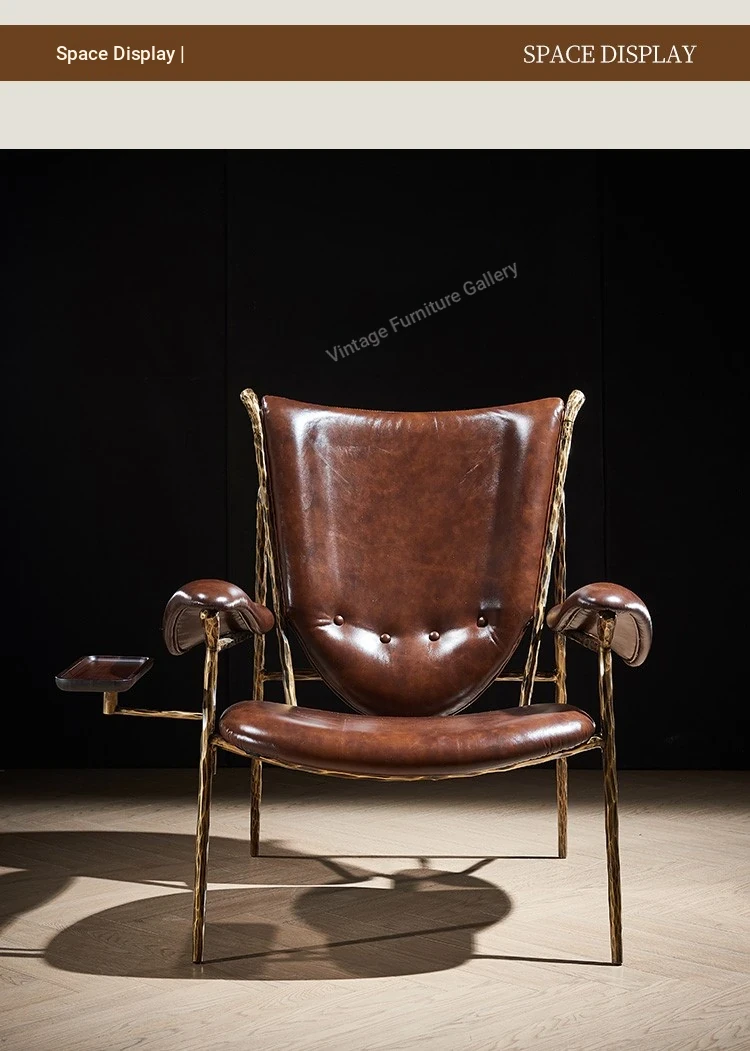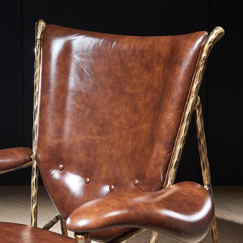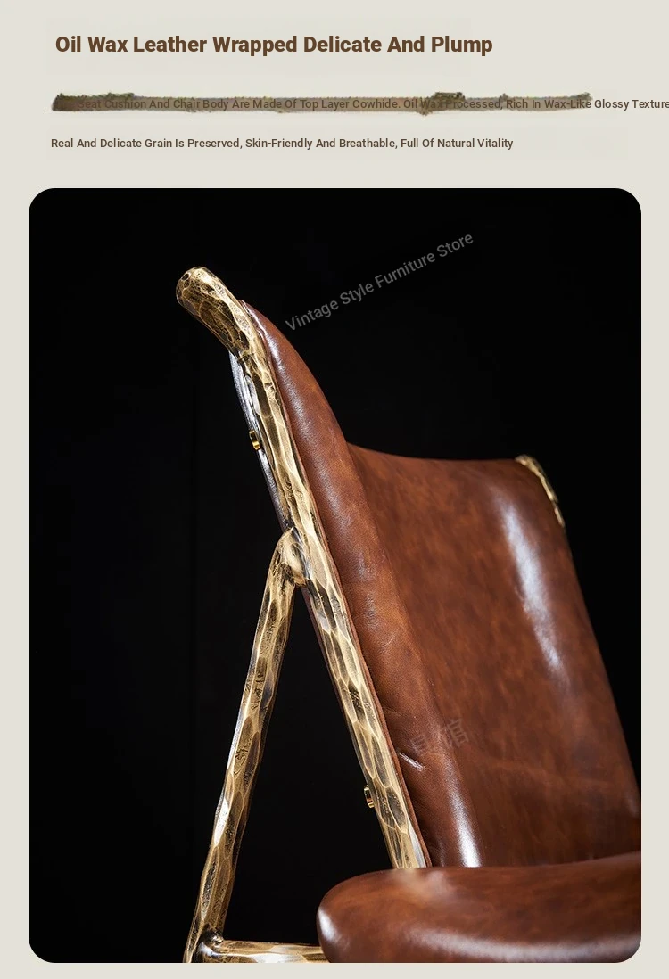 Vintage Chief Chair - Designer High-End American Retro Cigar Bar Single Sofa with Oil Wax Leather and Iron Frame for Luxurious Living Rooms