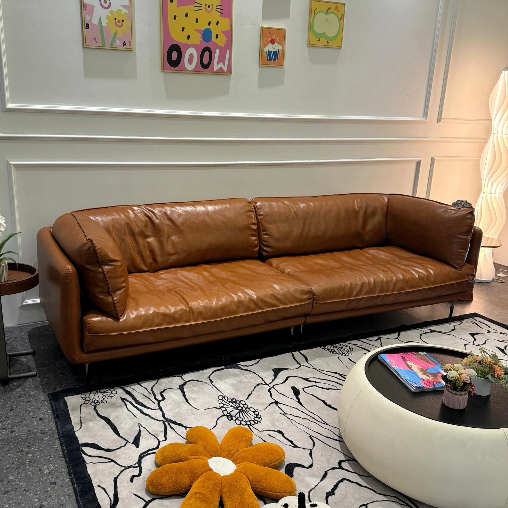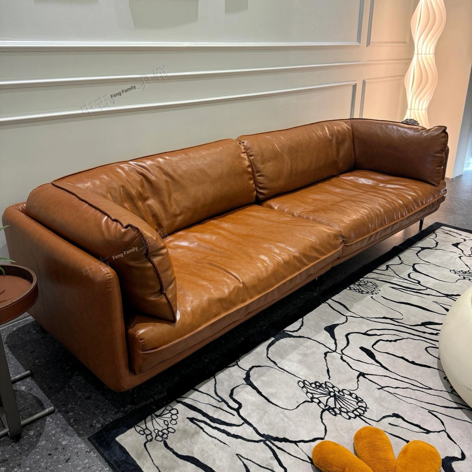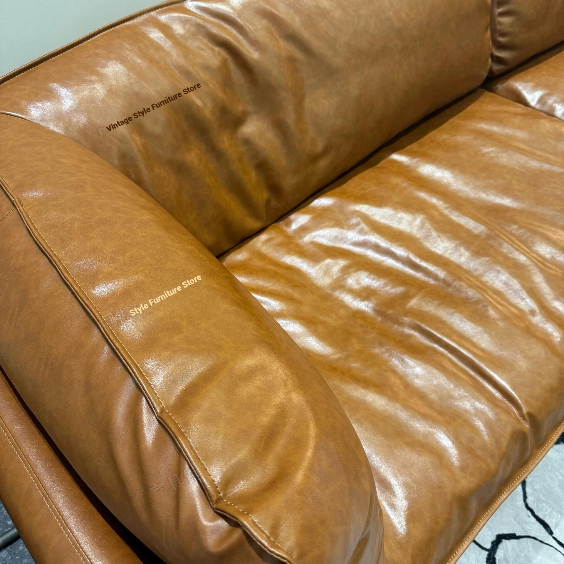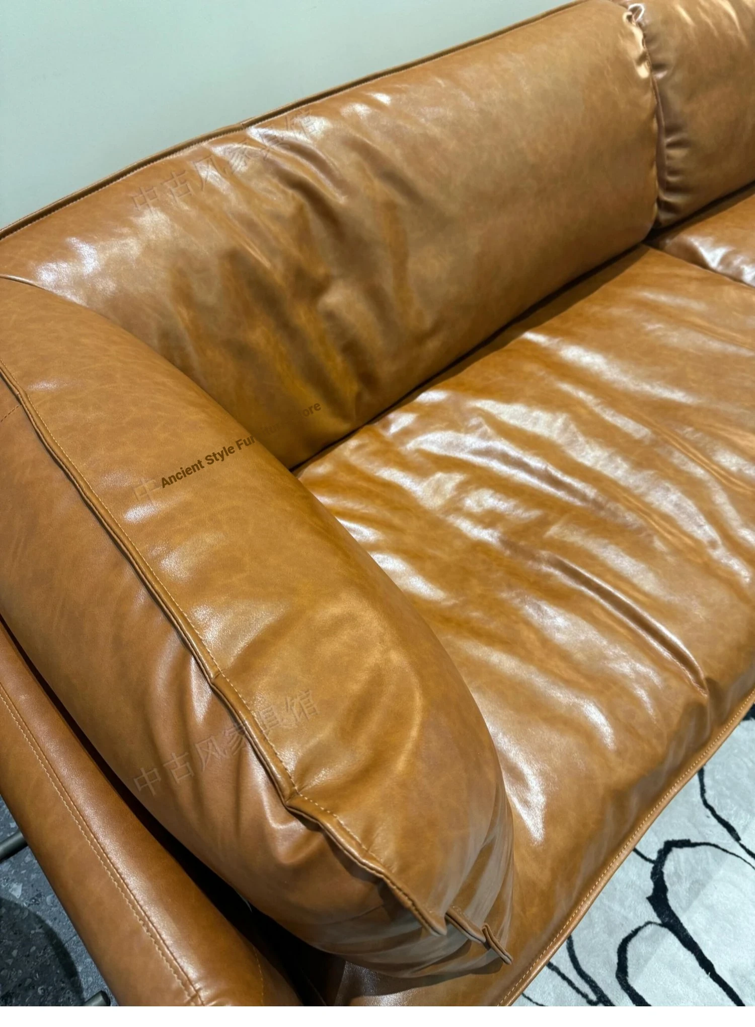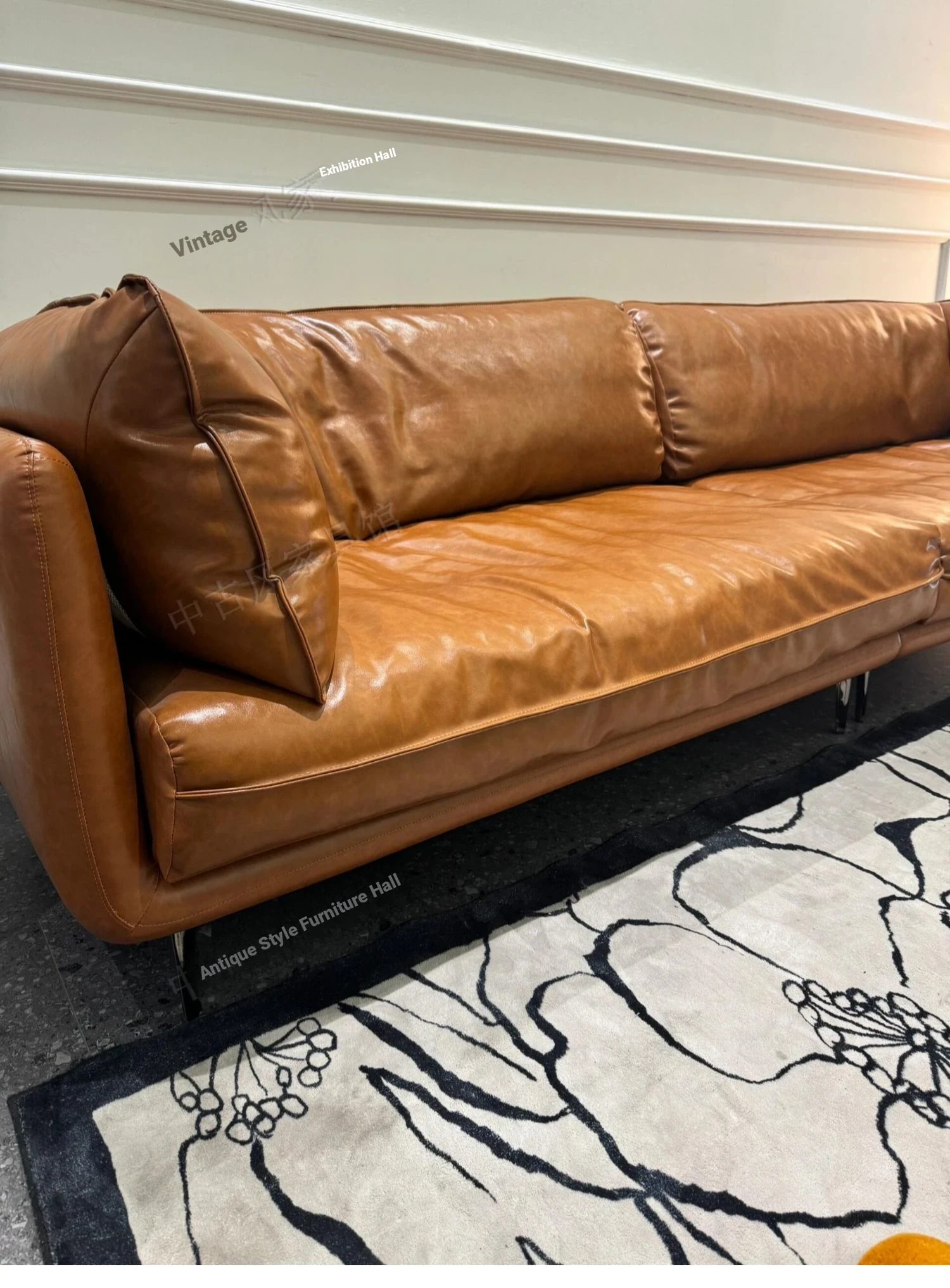 Vintage Oil Wax Leather Retro Sofa - Designer Three-Seater for Living Room, American Vintage Style, Premium Genuine Leather, Timeless Elegance