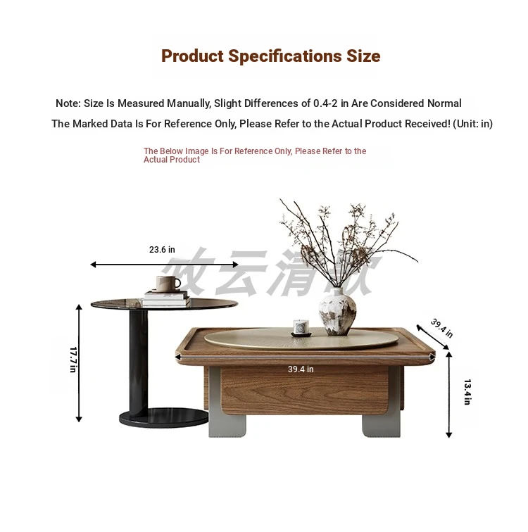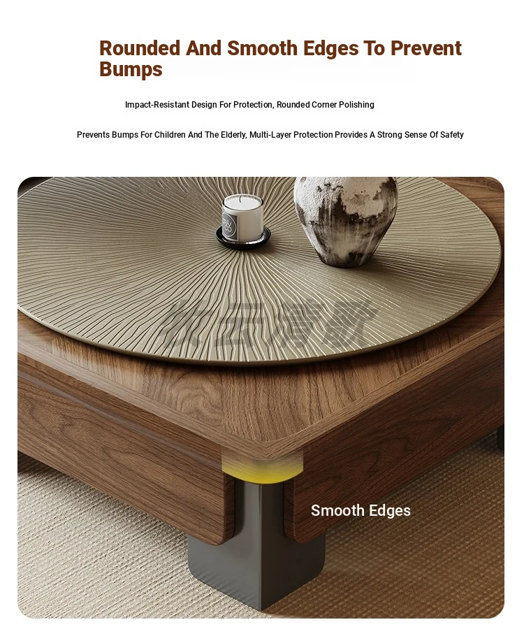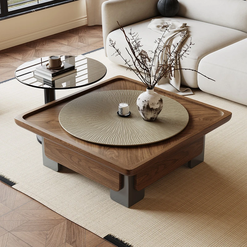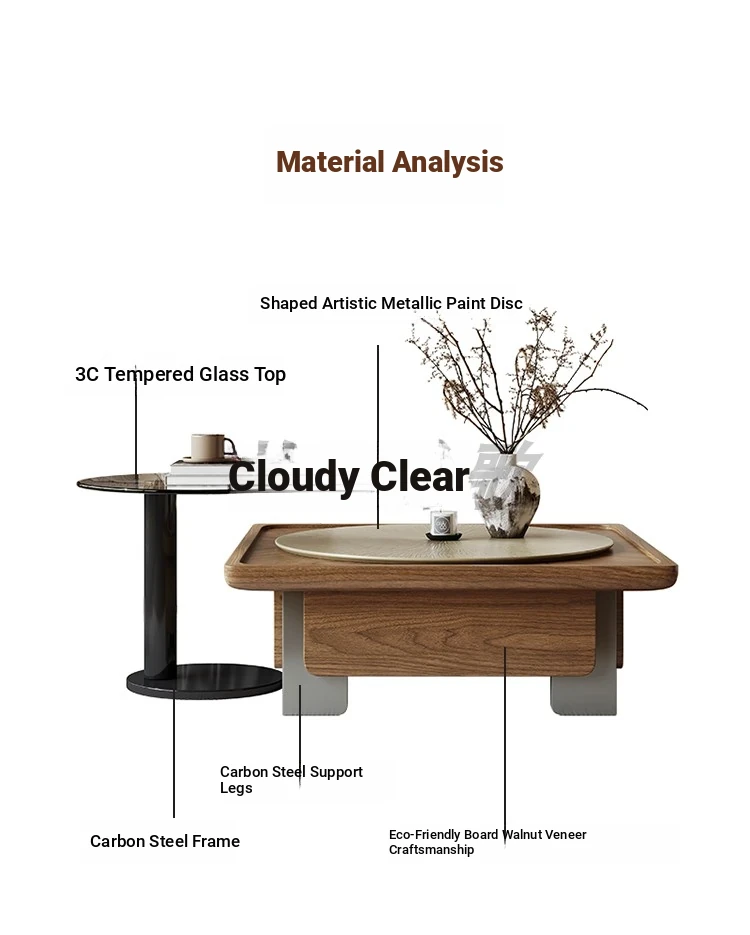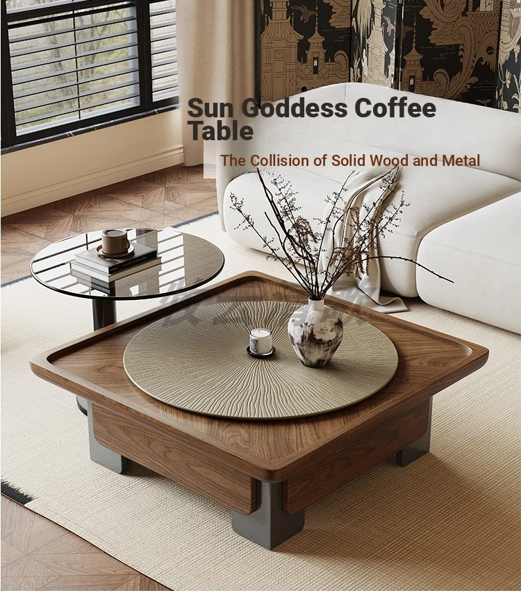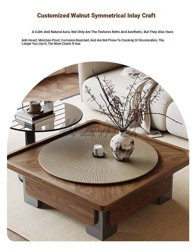 [Sun grain walnut veneer tea table + side combination]]