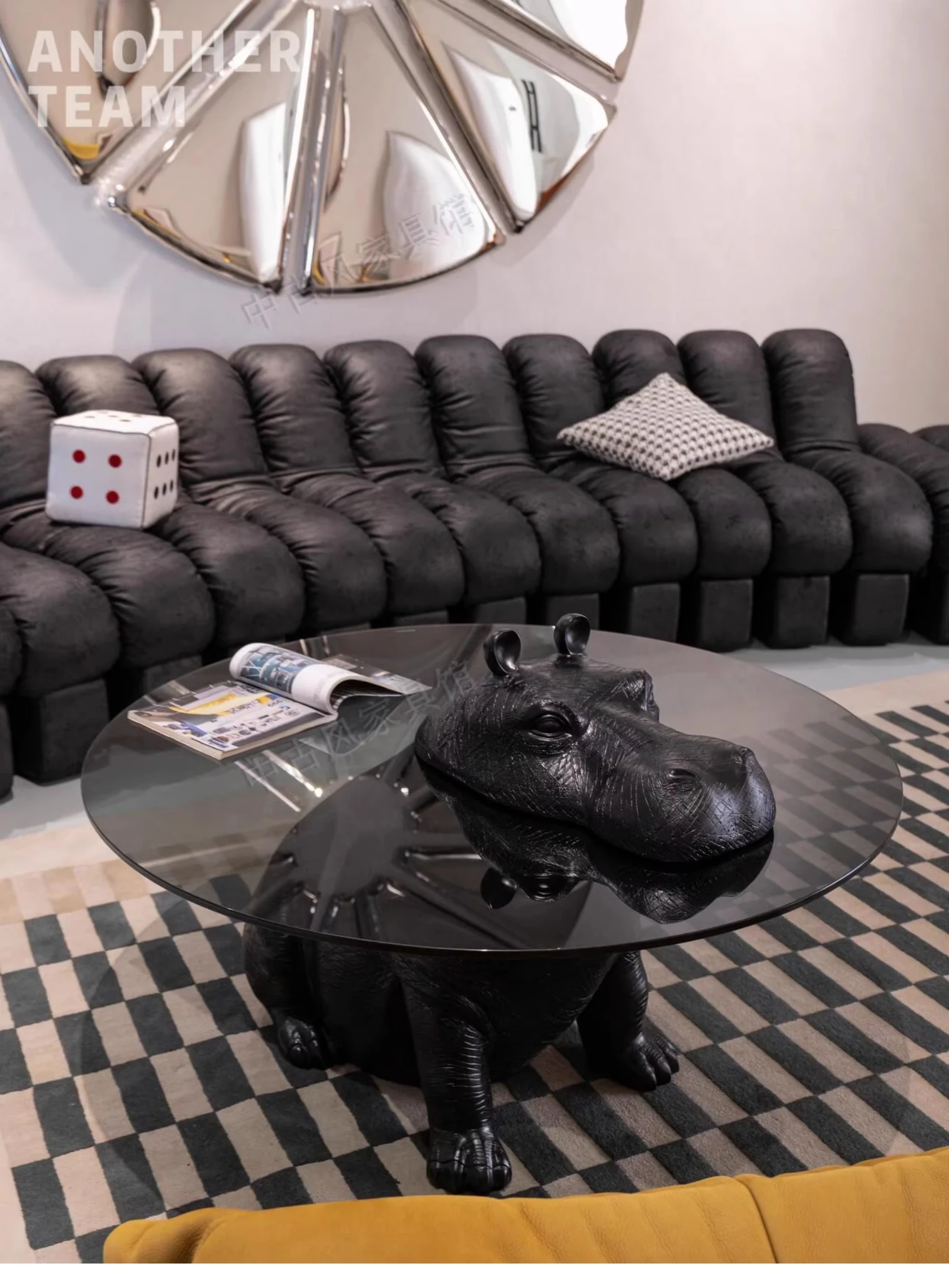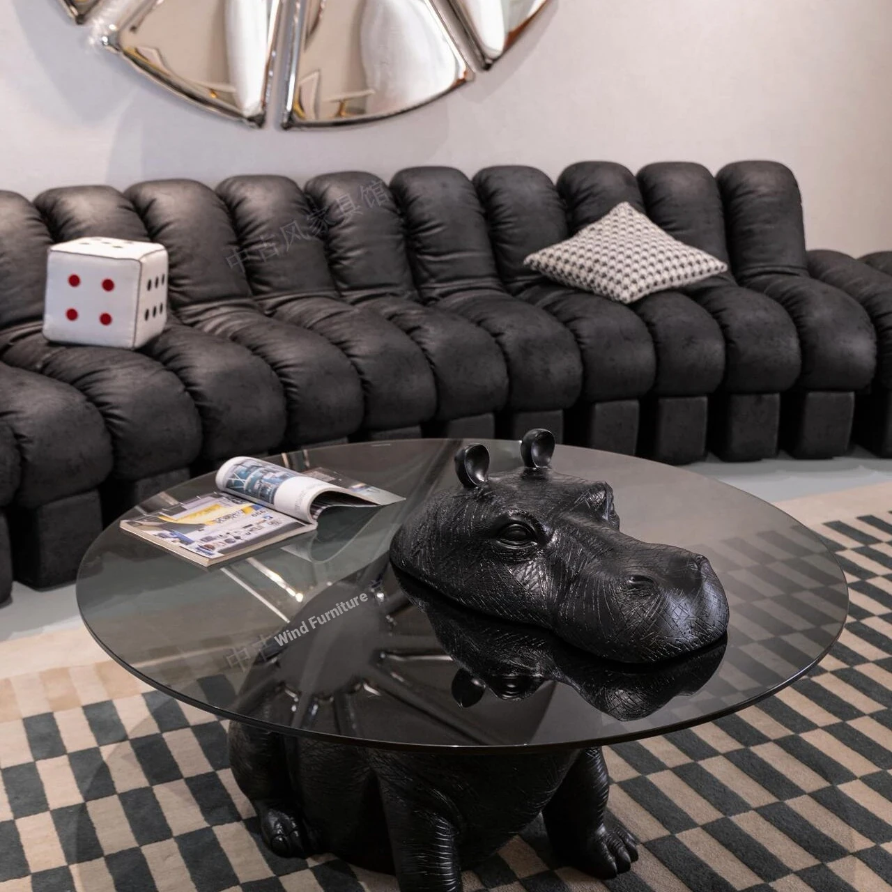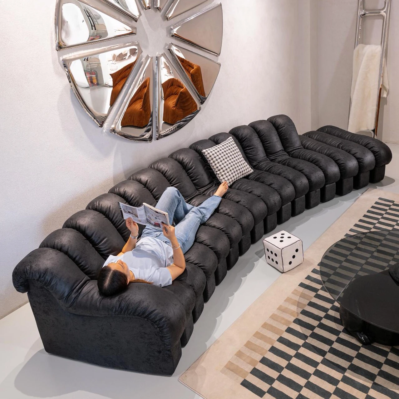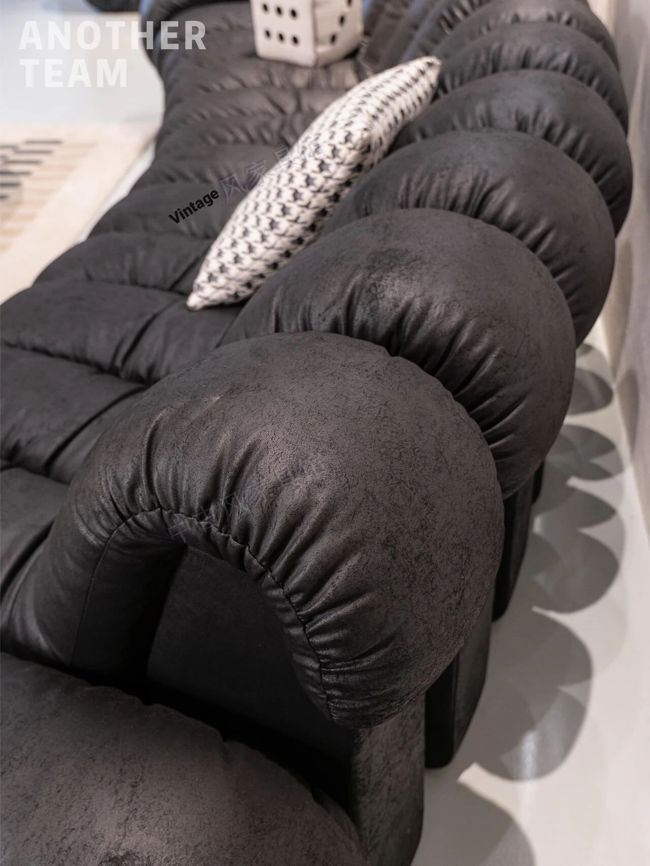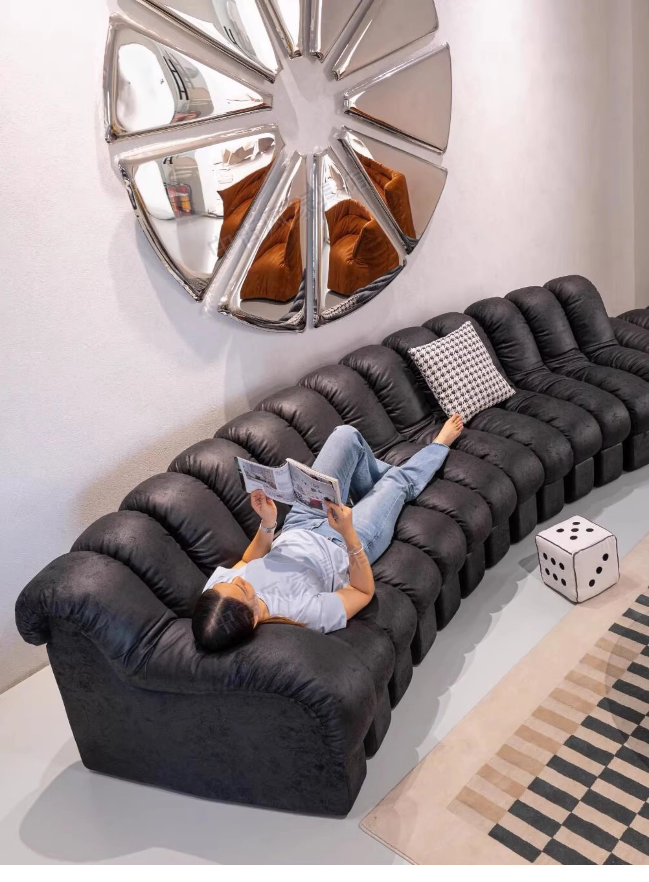 Vintage-Inspired Curved Designer Sofa in Genuine Top Grain Leather with Snake Pattern - Creative Modular Seating for Villas and Spacious Apartments