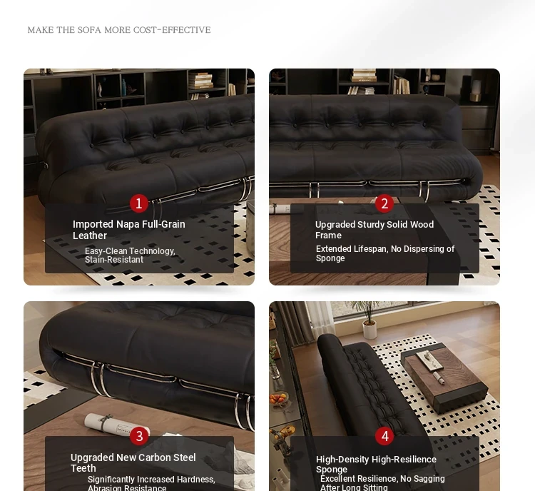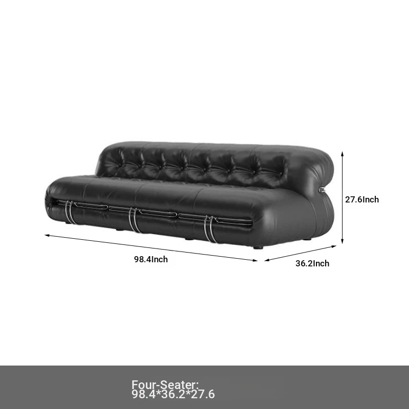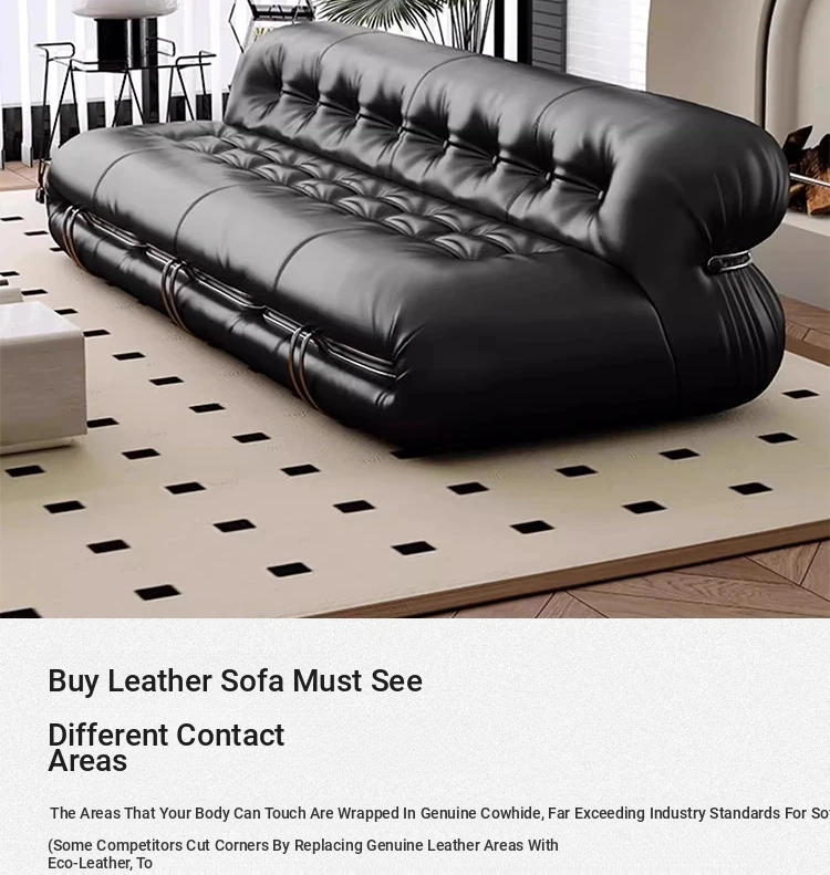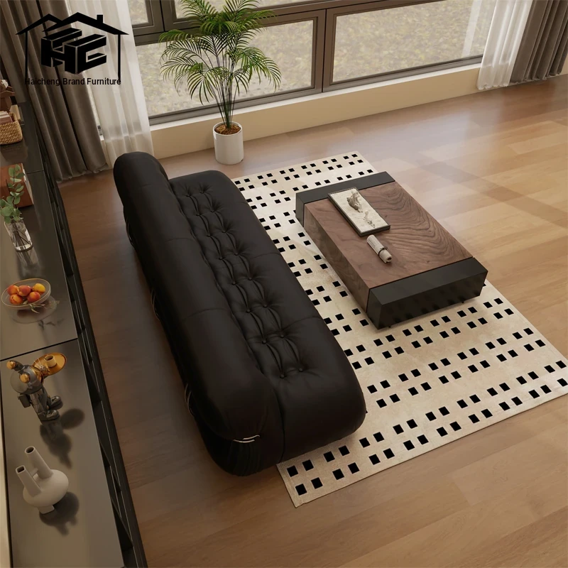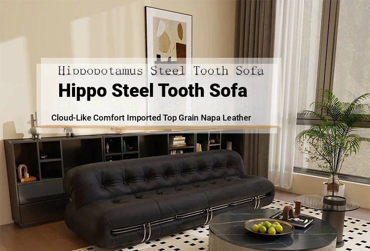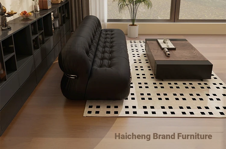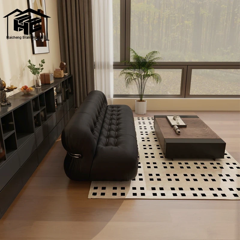 Wabi-Sabi Style Small Apartment Italian Minimalist Genuine Leather Sofa - 2024 New Hippo Black Leather Straight Sofa for Living Room
