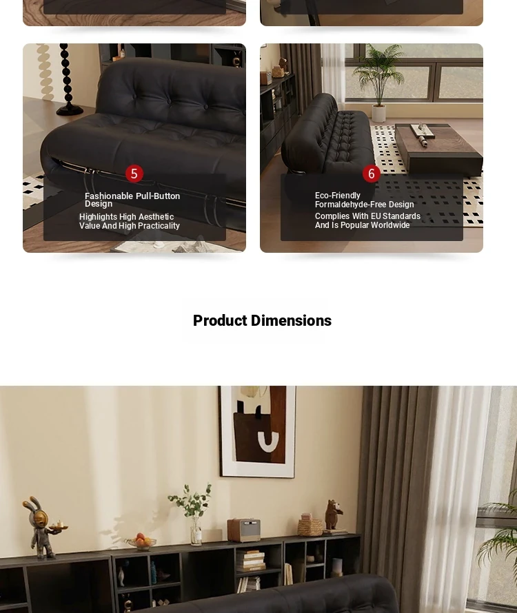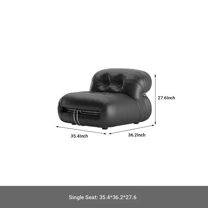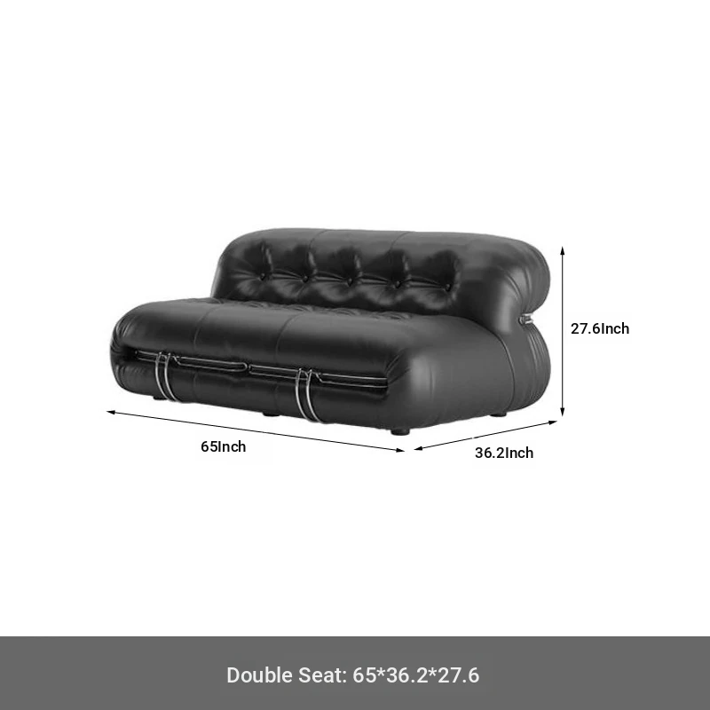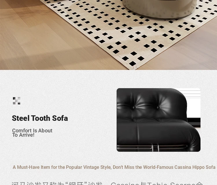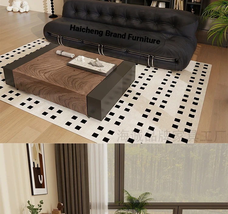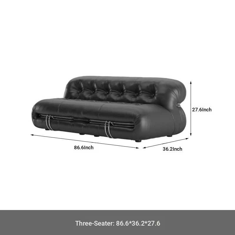 Wabi-Sabi Style Small Apartment Italian Minimalist Genuine Leather Sofa - 2024 New Hippo Black Leather Straight Sofa for Living Room