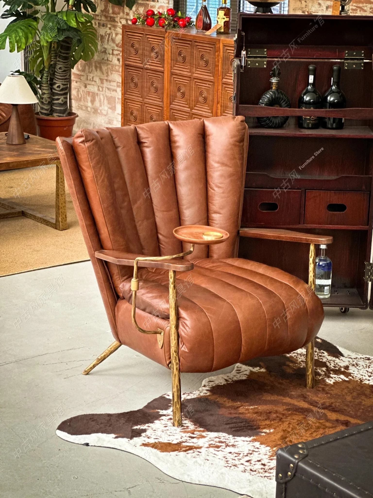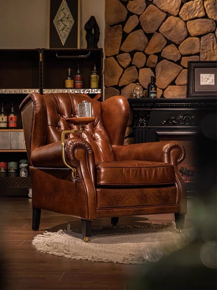1919 Vintage American Cigar Chair - Retro Oil Wax Leather Armchair, Perfect for Your Cigar Lounge or Home Theater, Stylish and Comfortable One-Seater for Relaxation