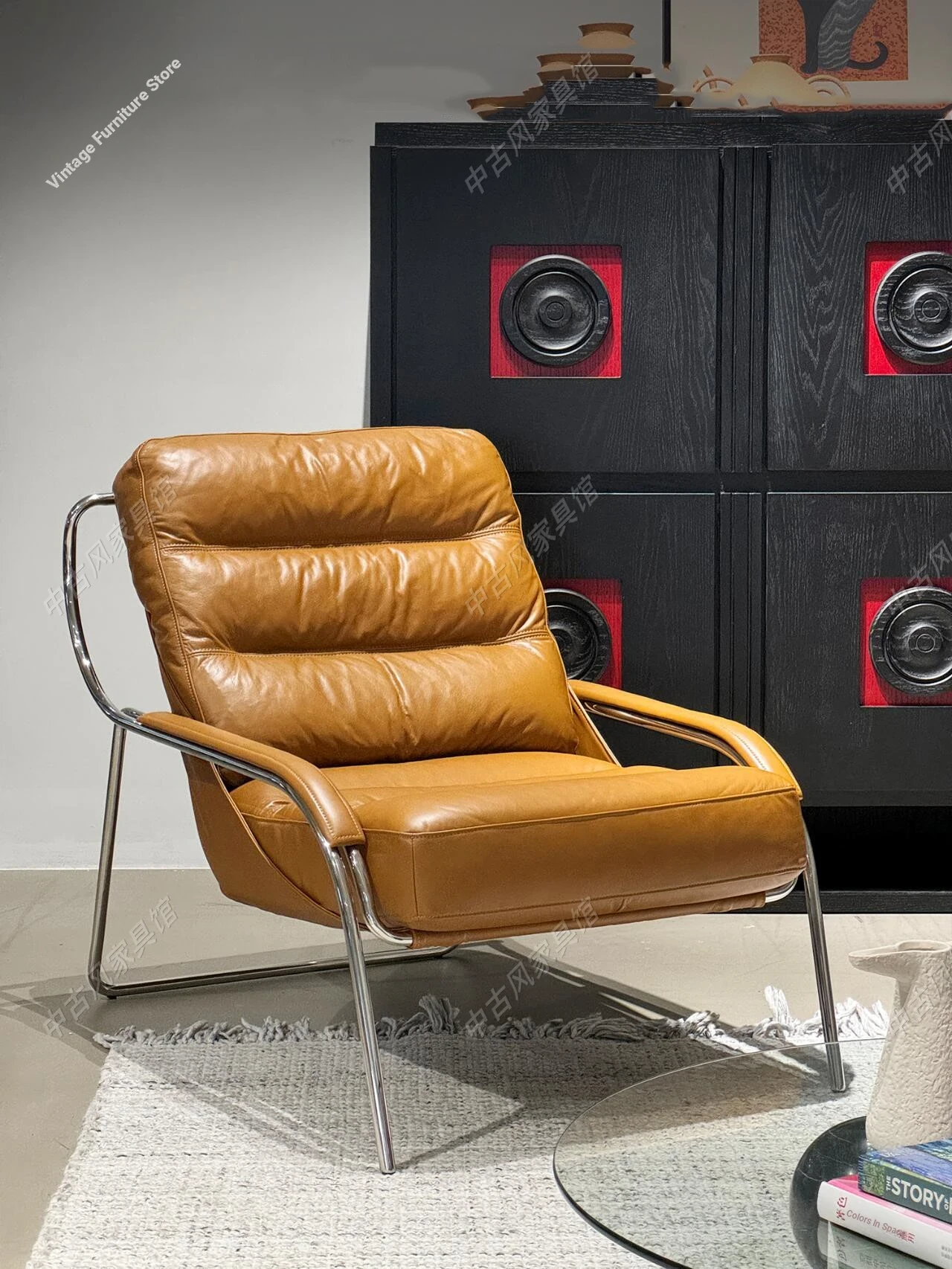 Vintage Designer Single Sofa Chair - Retro Waxed Leather Cigar Chair for Hotels and B&Bs, Perfect for Relaxation and Stylish Décor