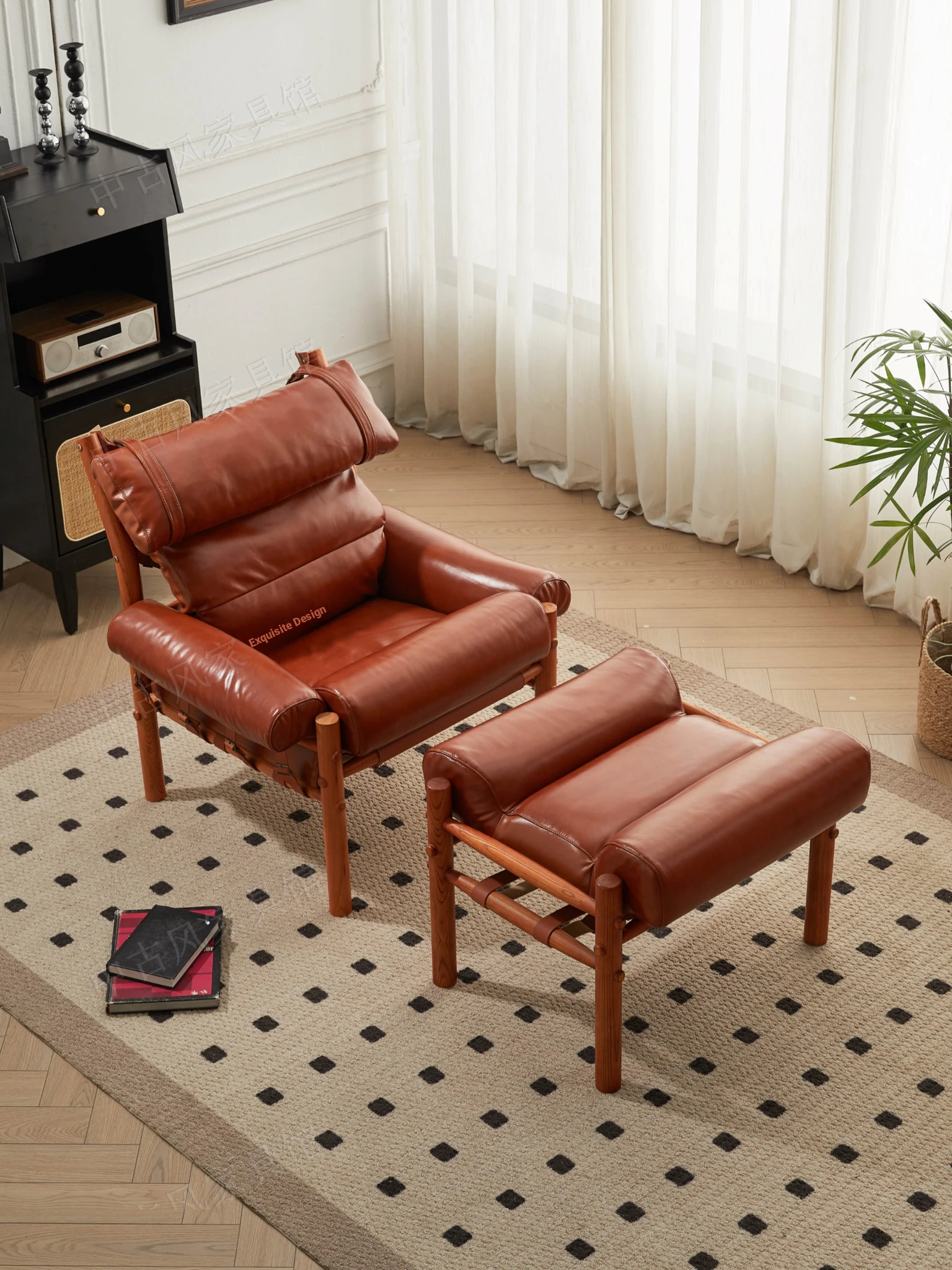 Vintage Style Sofa Chair - Retro Oil Wax Leather Armchair for Living Room Design, Comfortable Lounge Chair for Balcony, Perfect for Relaxation and Leisure
