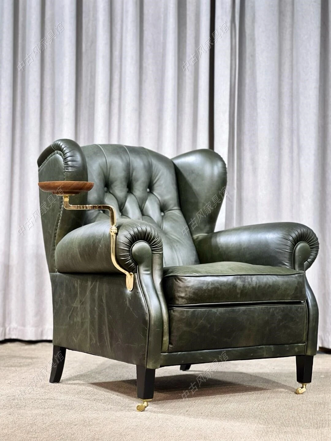 Vintage 1919 Cigar Chair with Oil Wax Leather – Retro American Tiger Chair, Godfather Style, Perfect for Cigar Lounges and Relaxation – Stylish Single Sofa for Your Living Space