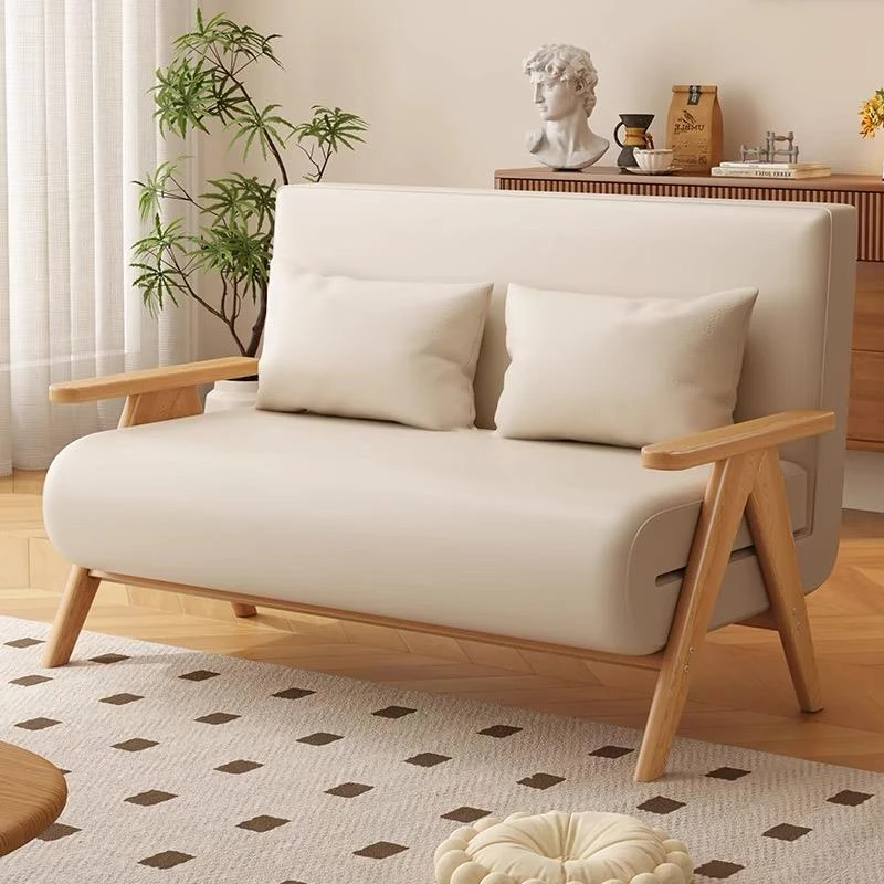 Multifunctional Solid Wood Sofa Bed Set - Foldable and Space-Saving for Small Living Rooms, Perfect for Single, Double, or Triple Seating and Sleeping Needs!