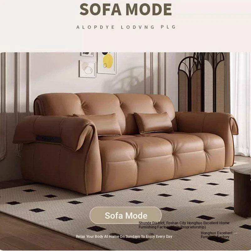 Electric Leather Sofa Bed for Living Room - Multi-Functional Cinema Seating for Home Theater and Private Viewing Room