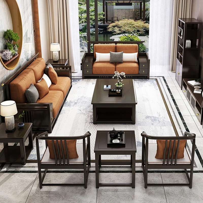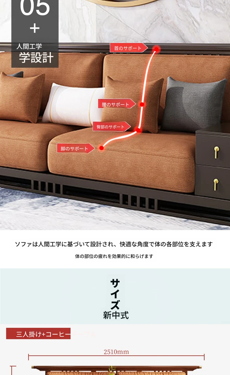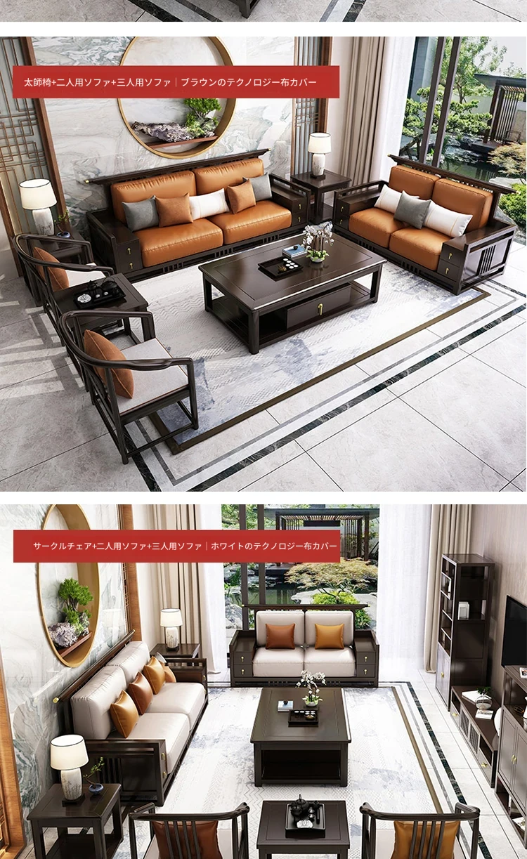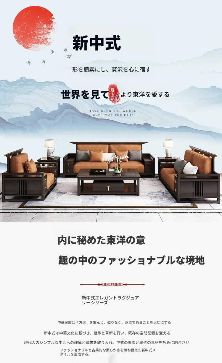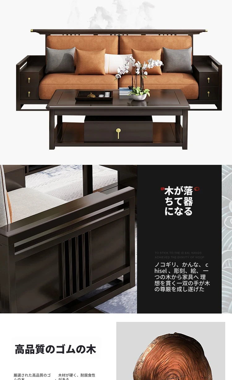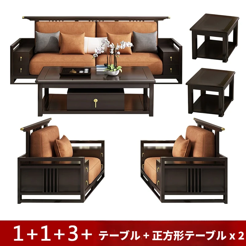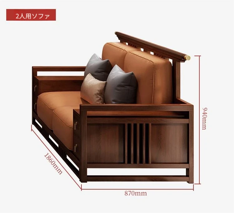 新中式デザインの実木ソファ 2024年新作!モダンでスタイリッシュなリビング向け、大小どんなお部屋にもフィット。冬も夏も快適に使え、収納機能付きでお部屋をスッキリ整理!