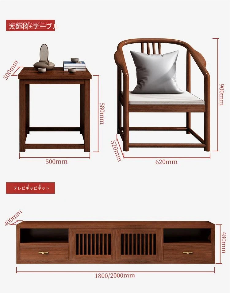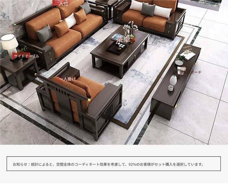 太師椅のセット+トリプルソファ+ダブルソファ+コーヒーテーブル+サイドテーブル×2