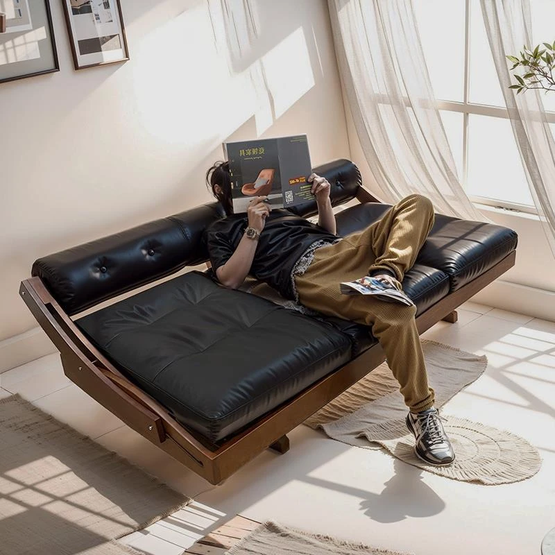 【香港送料無料】折りたたみ式実木ソファベッド - 2023新作!小型スペースにぴったりの二人用・一人用、リビングに最適な多機能デザイン!快適さとスタイルを両立させた一品です。
