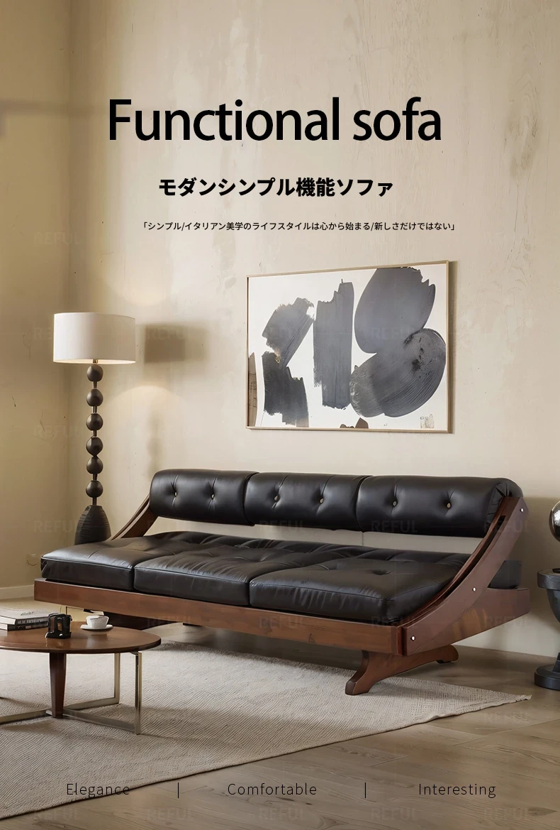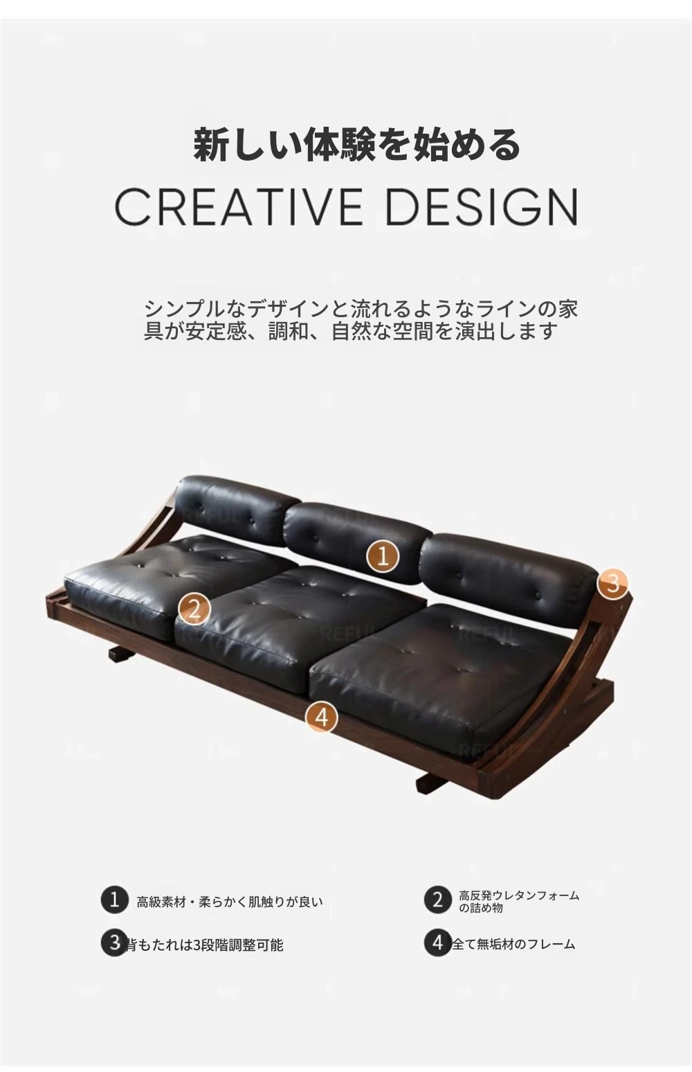 機能的な真皮ソファ 小型スペース向け 電動調整可能なフレンチヴィンテージスタイル 高級牛革 ブラックレザーソファで、快適さとスタイルを両立!