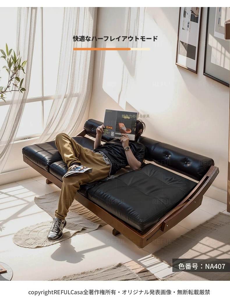 イタリアンレザー製ソファベッド|現代的でシンプルなデザイン|小さなスペースに最適|折りたたみ&伸縮機能付き|収納も充実した電動ソファベッド!快適なリラックス空間を実現。