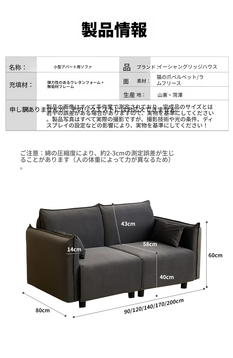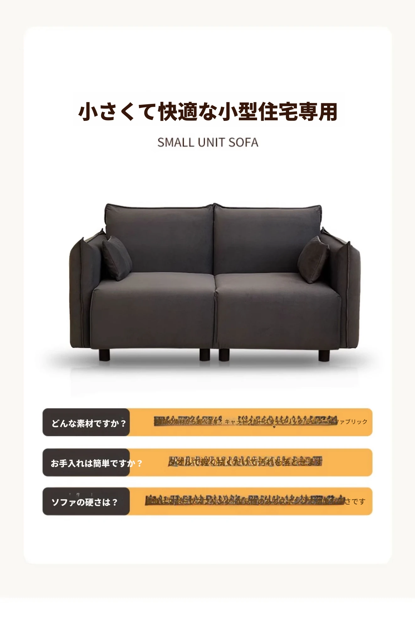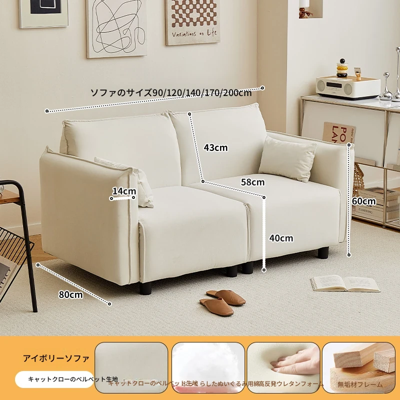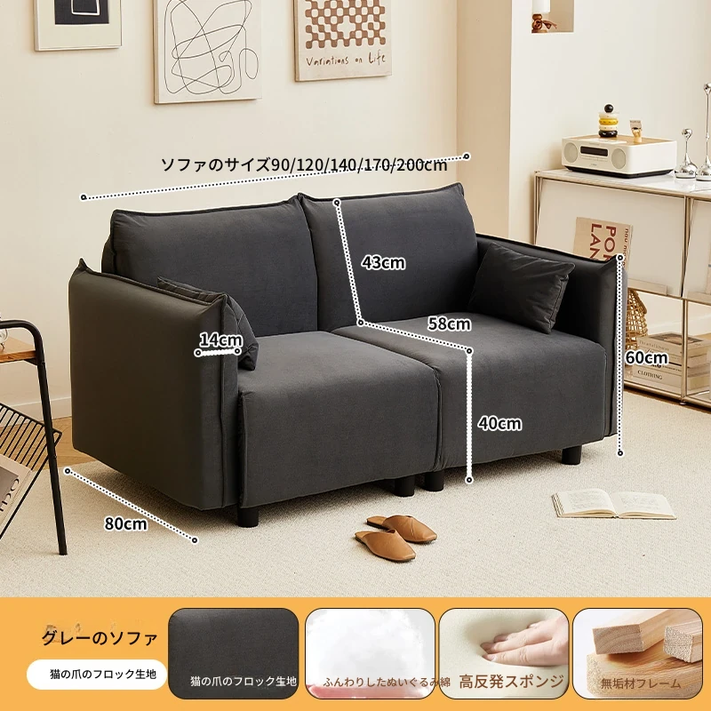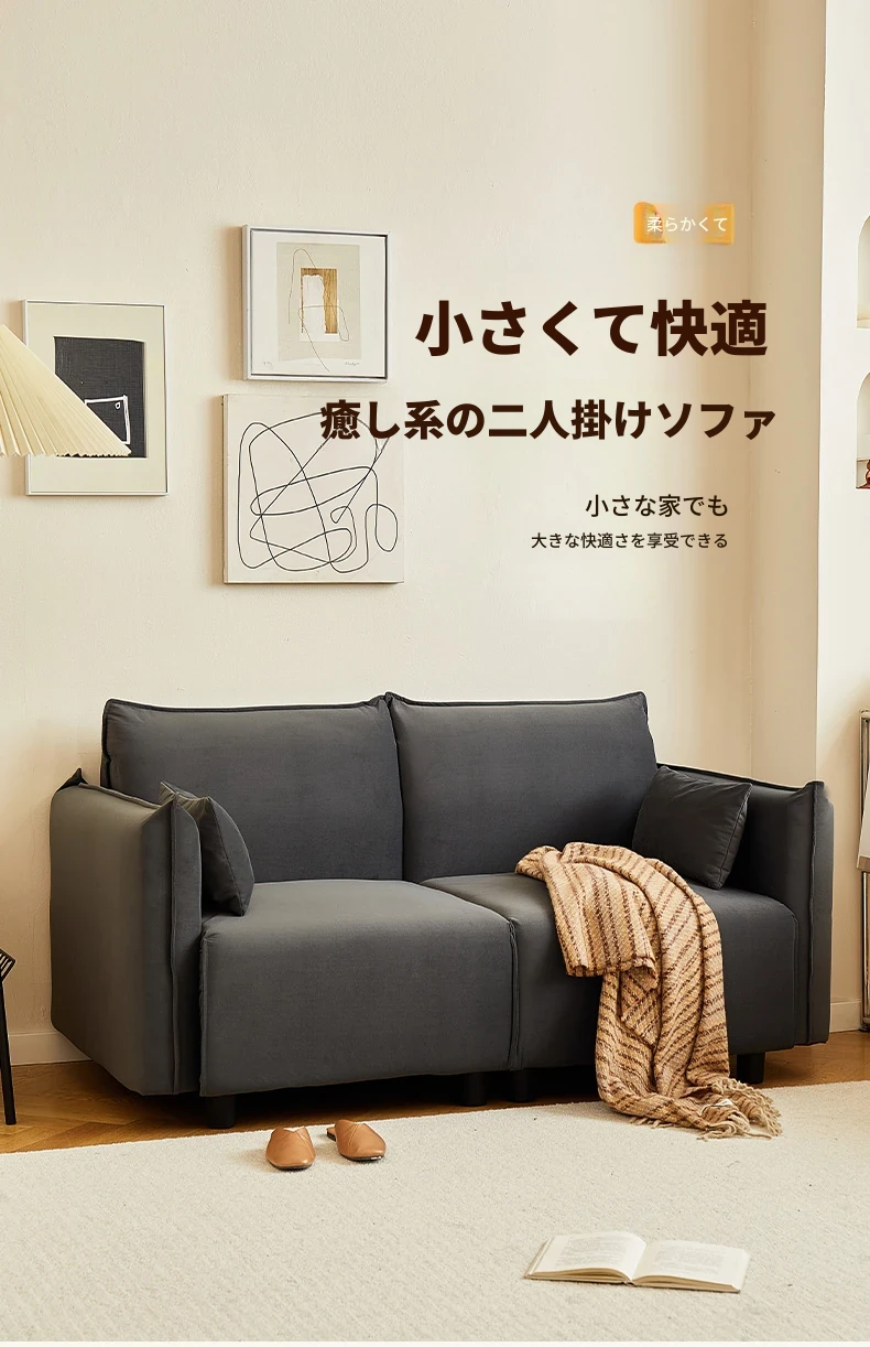 2025年新作!小型豆腐块デザインのシンプルモダン2人掛けソファ - コンパクトでスタイリッシュなリビングにぴったり!おしゃれな布製で、快適さと機能性を兼ね備えた一品。狭いお部屋にも理想的な選択肢です!