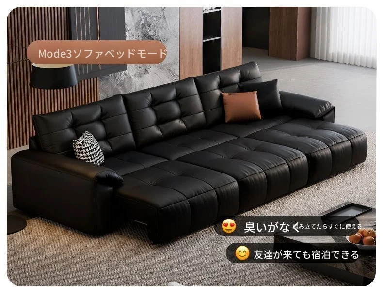 イタリアンレザー製ソファベッド|現代的でシンプルなデザイン|小さなスペースに最適|折りたたみ&伸縮機能付き|収納も充実した電動ソファベッド!快適なリラックス空間を実現。