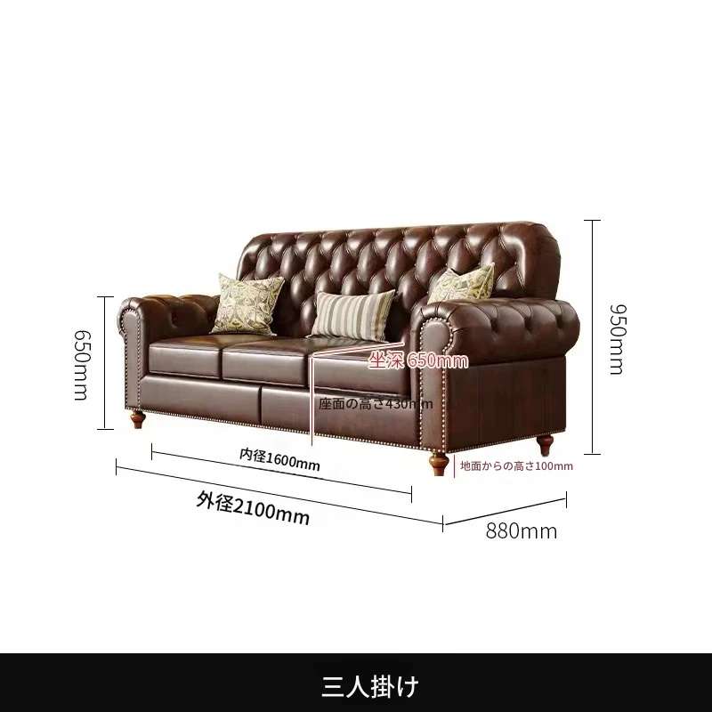 【輸入オイルワックストップグレイン牛革】3人掛け