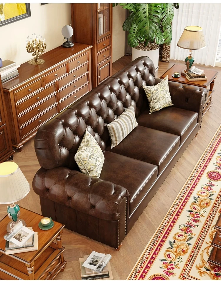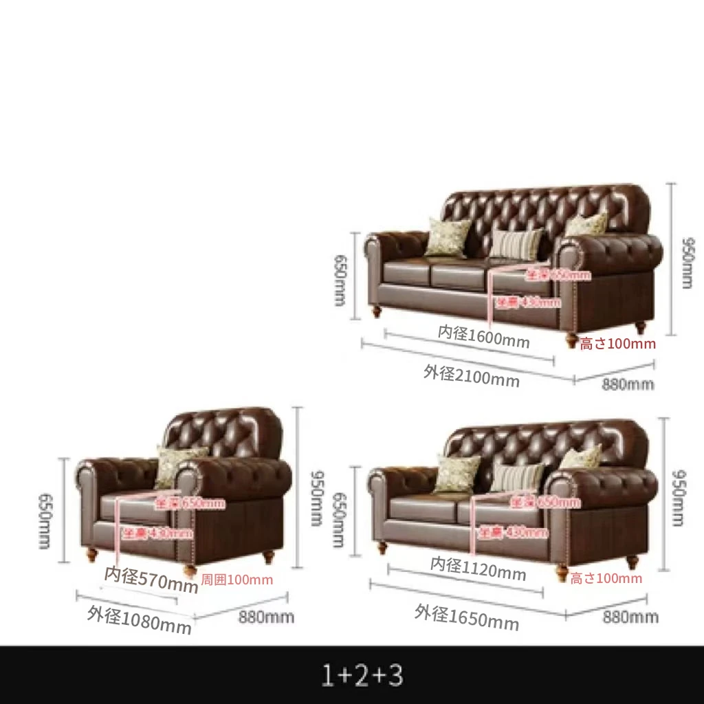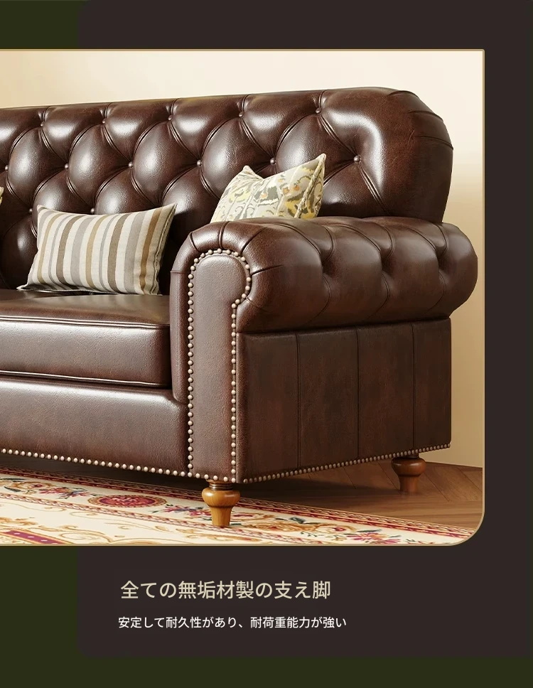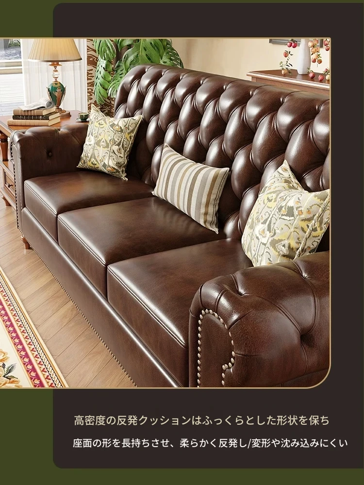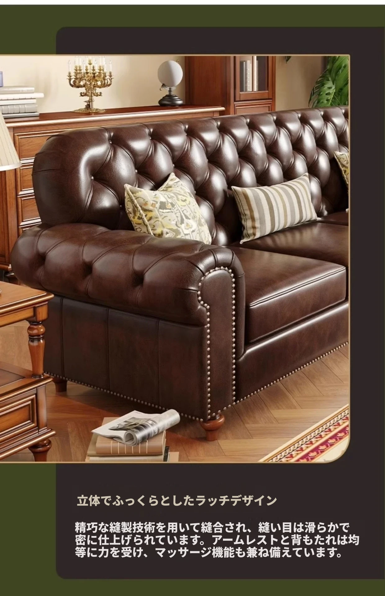 アメリカンヴィンテージスタイルのラグジュアリーソファセット123 - 田舎の別荘にぴったりな本革製、耐久性抜群!大小様々なリビングルームに最適です。