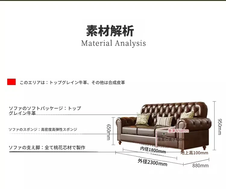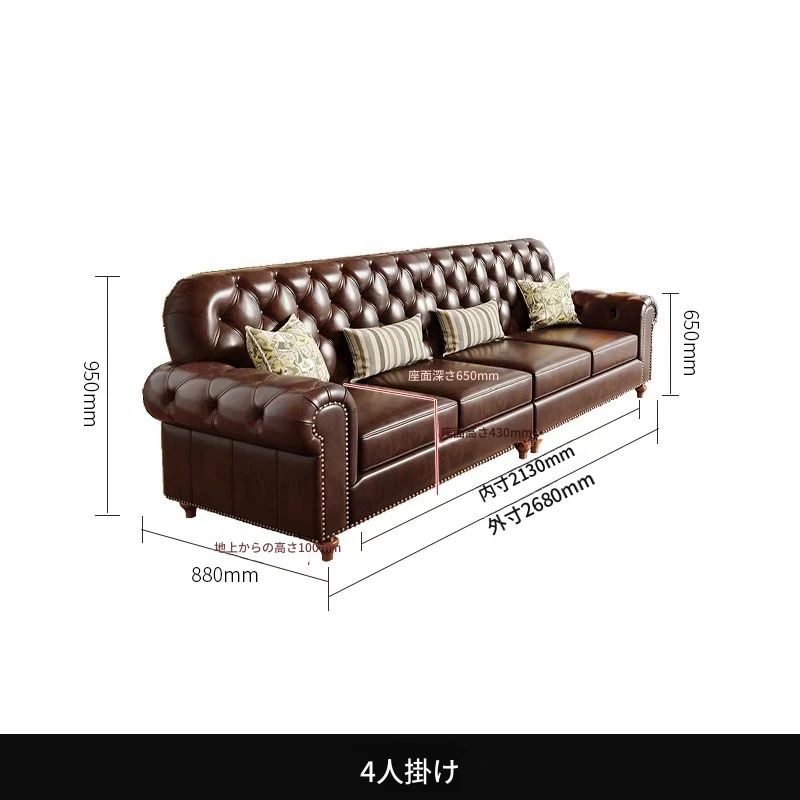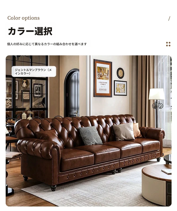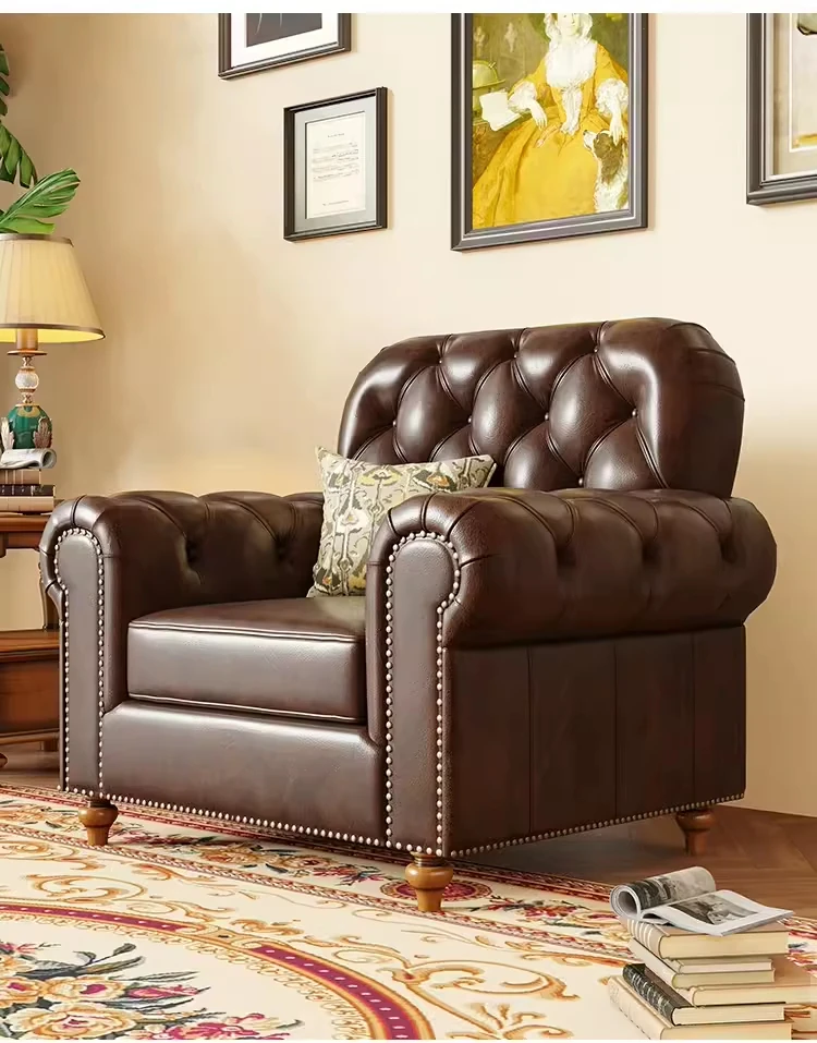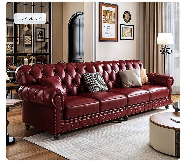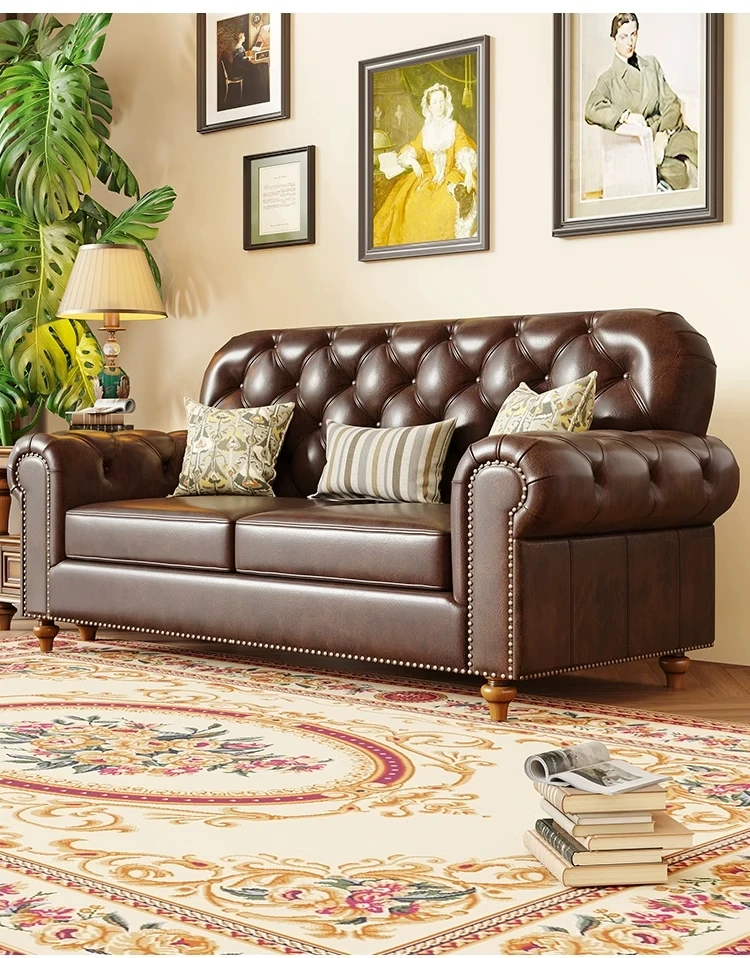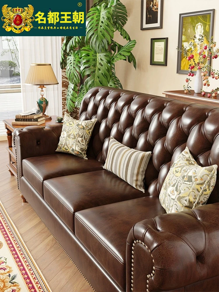 アメリカンヴィンテージスタイルのラグジュアリーソファセット123 - 田舎の別荘にぴったりな本革製、耐久性抜群!大小様々なリビングルームに最適です。