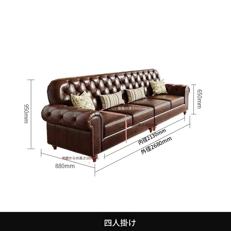 【輸入オイルワックストップグレイン牛革】4人掛け