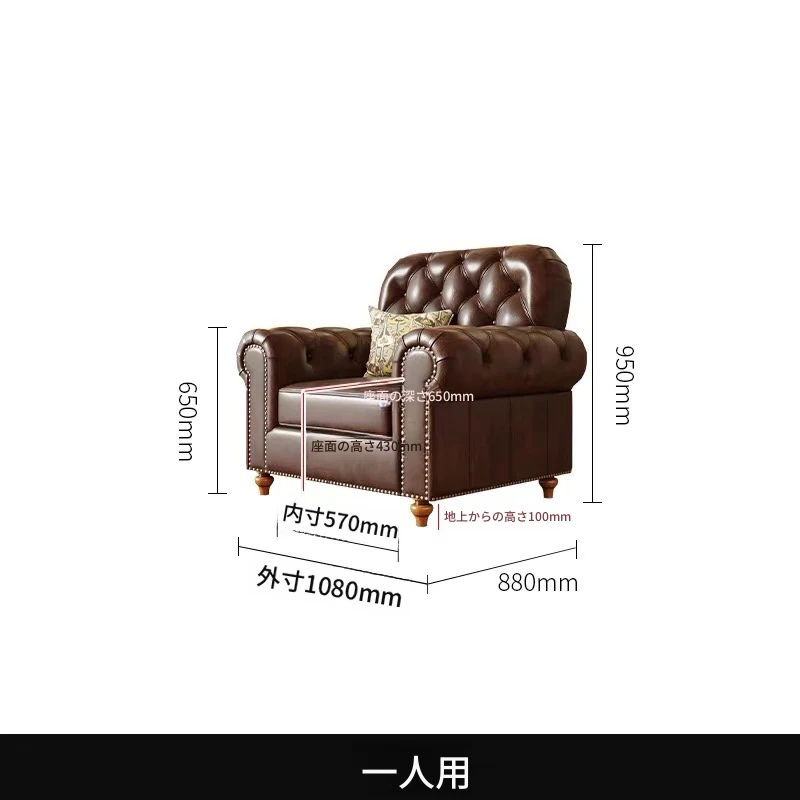 【輸入オイルワックストップグレイン牛革】1人掛け