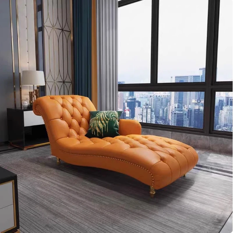 アメリカンスタイルのラグジュアリーなスツール - 小型リビングや寝室に最適!本革使用のクリームホワイトとオレンジ色の一人用リクライニングチェアで、スタイリッシュで快適な空間を演出します。