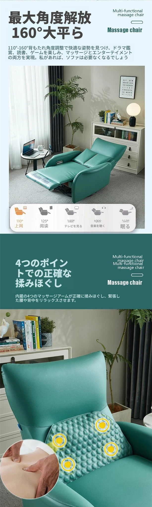 エグゼクティブスペースソファキャビン - 機能性リクライニングチェア、温熱マッサージ付き、リラックスできる電動一人用ソファ!快適さと贅沢を兼ね備えた、至福のひとときをお届けします。
