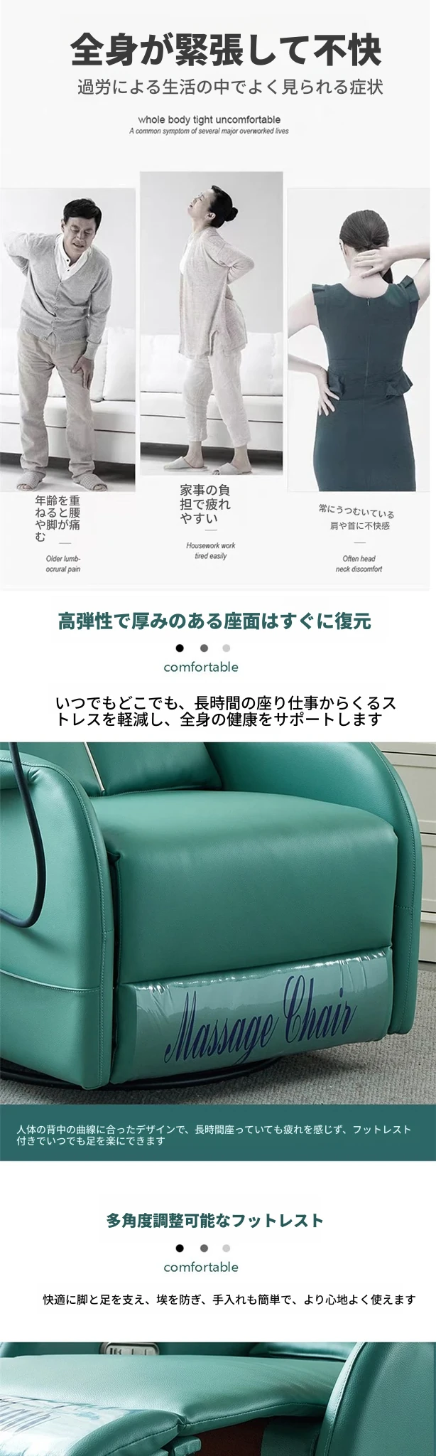 人気の多機能家庭用マッサージチェア!一人用のラクラクソファ、リクライニング可能な電動ロッキングチェアで、リビングでのくつろぎタイムを極上に。心地よいマッサージ機能で、日々の疲れを癒します。