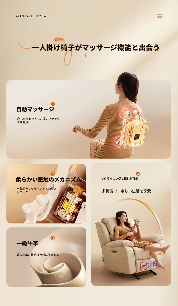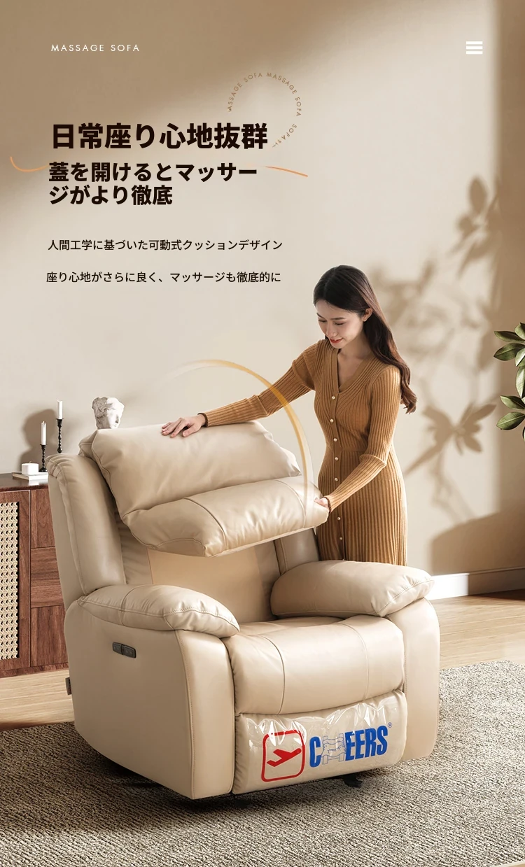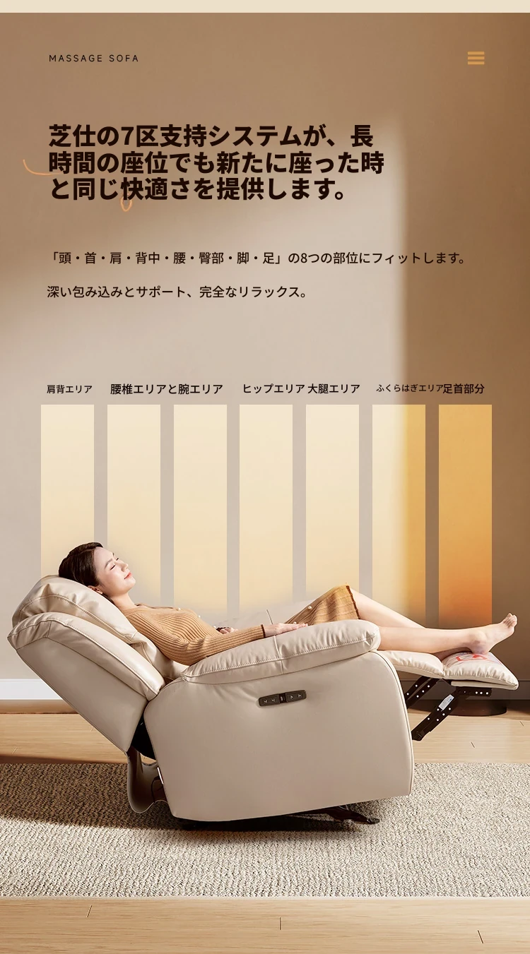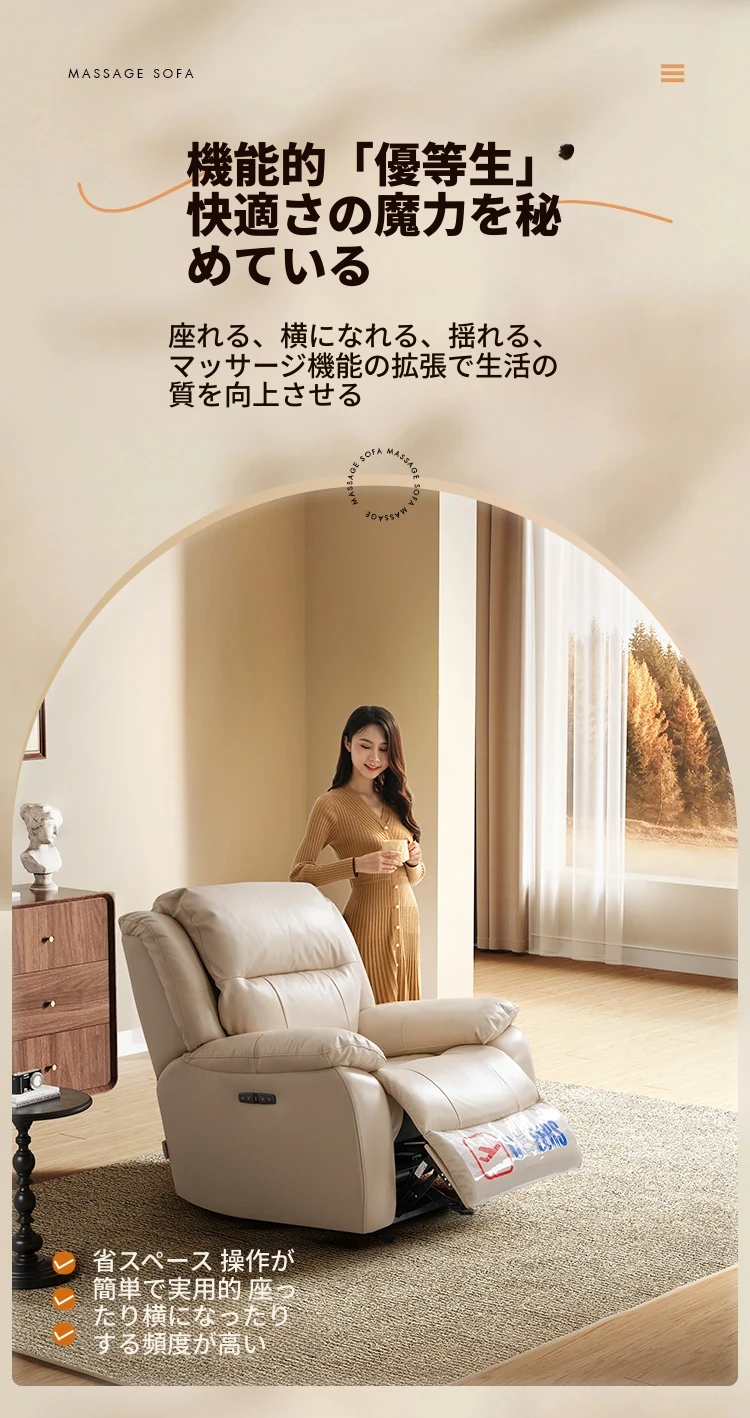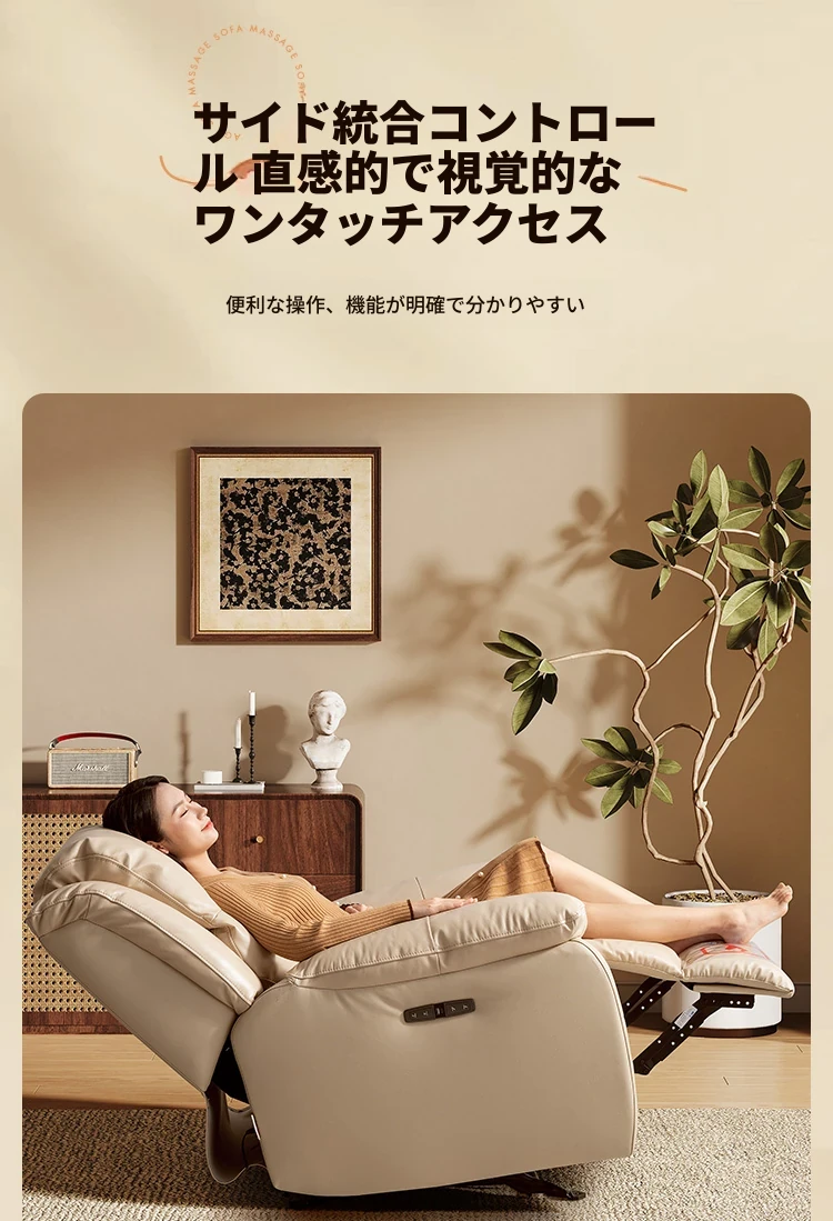 エグゼクティブスペースソファキャビン - 機能性リクライニングチェア、温熱マッサージ付き、リラックスできる電動一人用ソファ!快適さと贅沢を兼ね備えた、至福のひとときをお届けします。