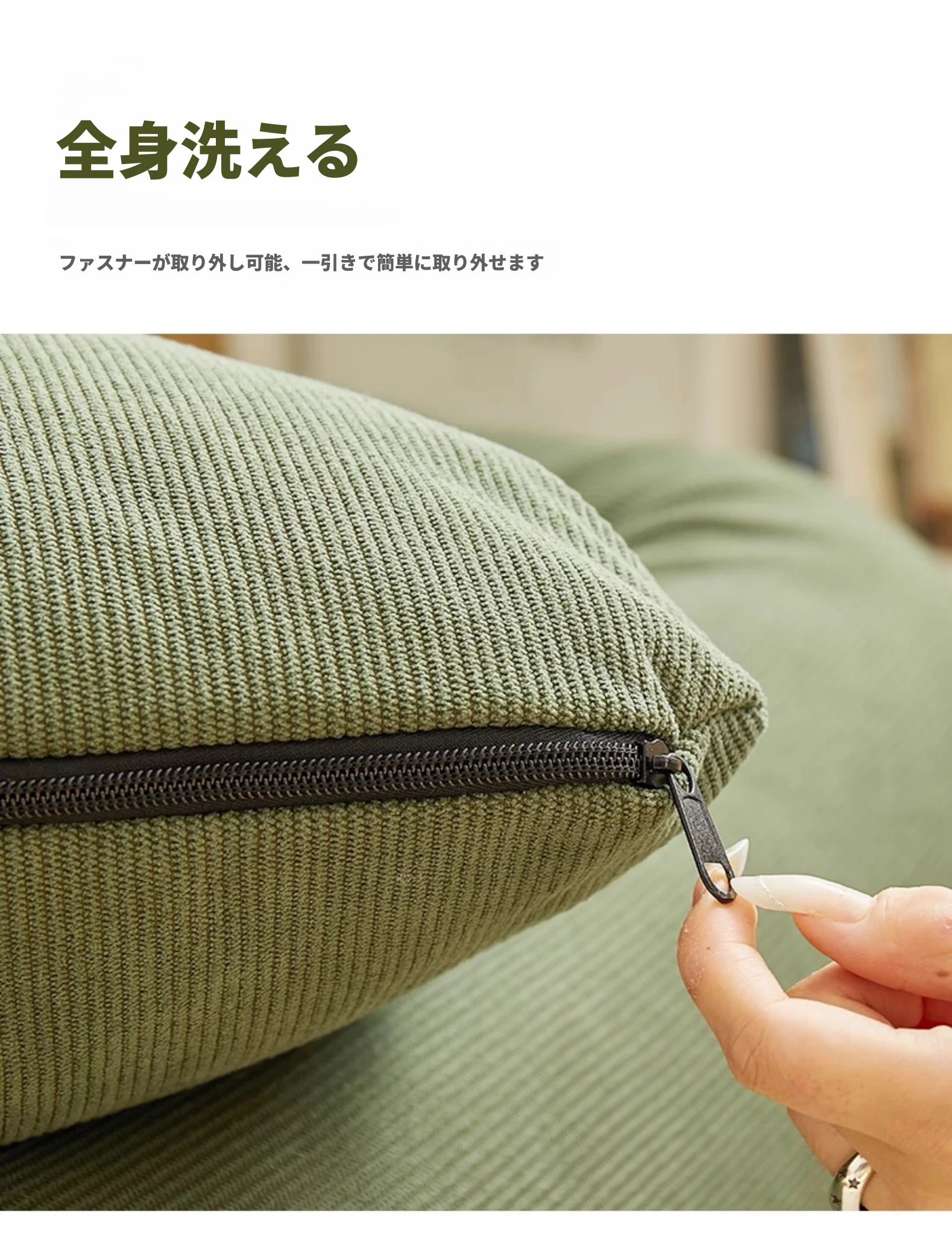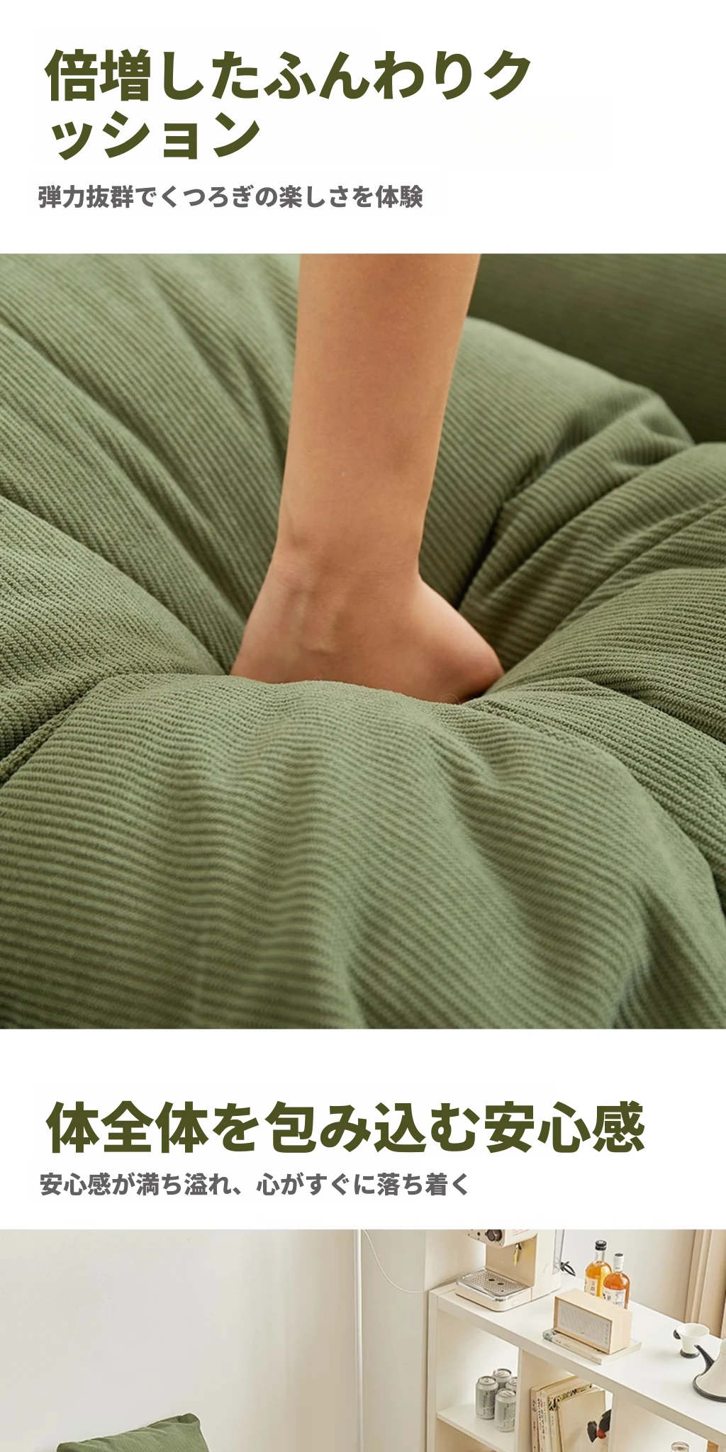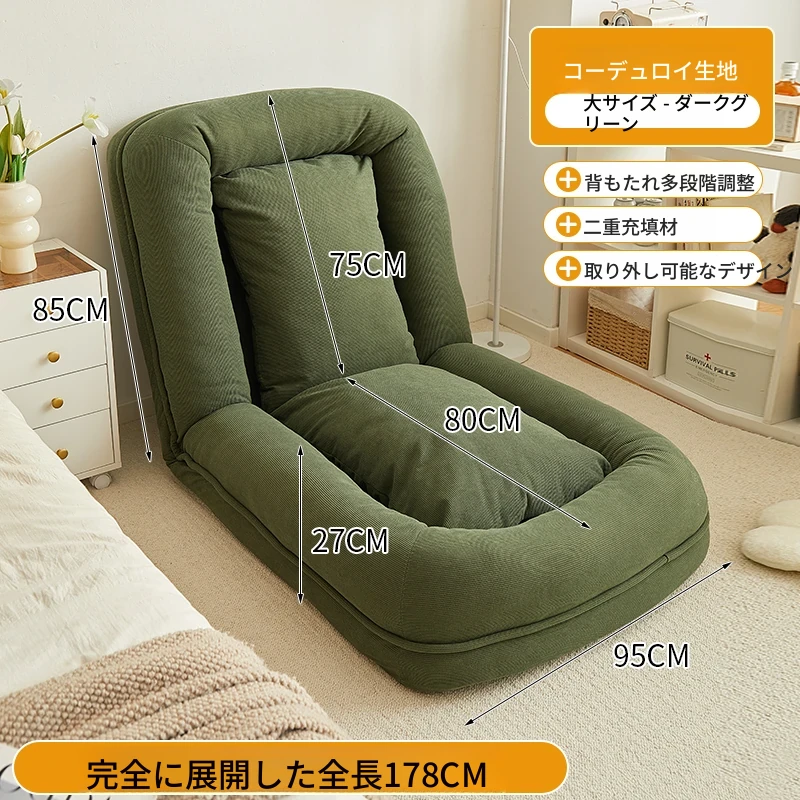 大号-加厚新款【展開178CM*95CM】肌触りの良いコーデュロイ生地-ダークグリーン【背もたれ+クッション付き】
