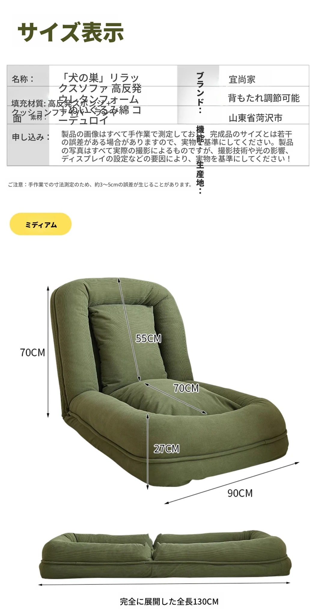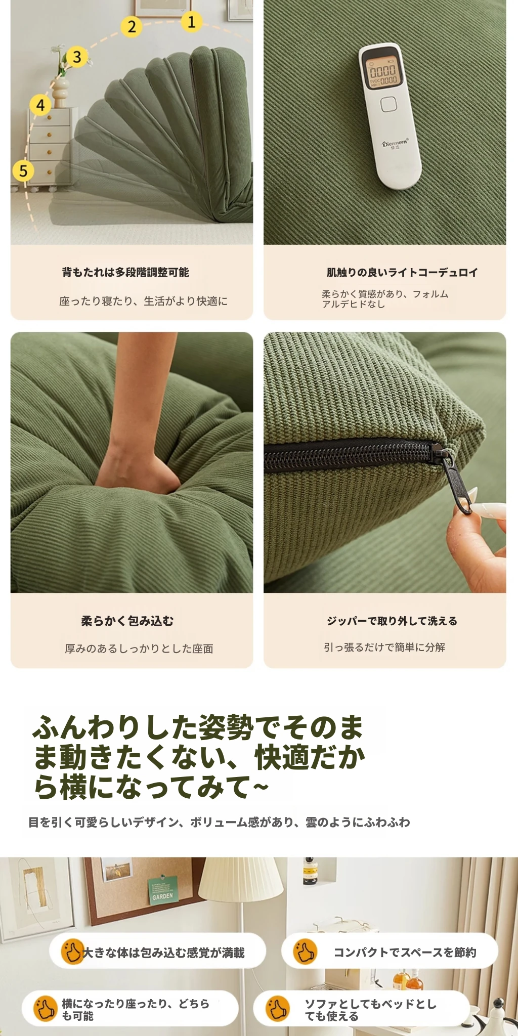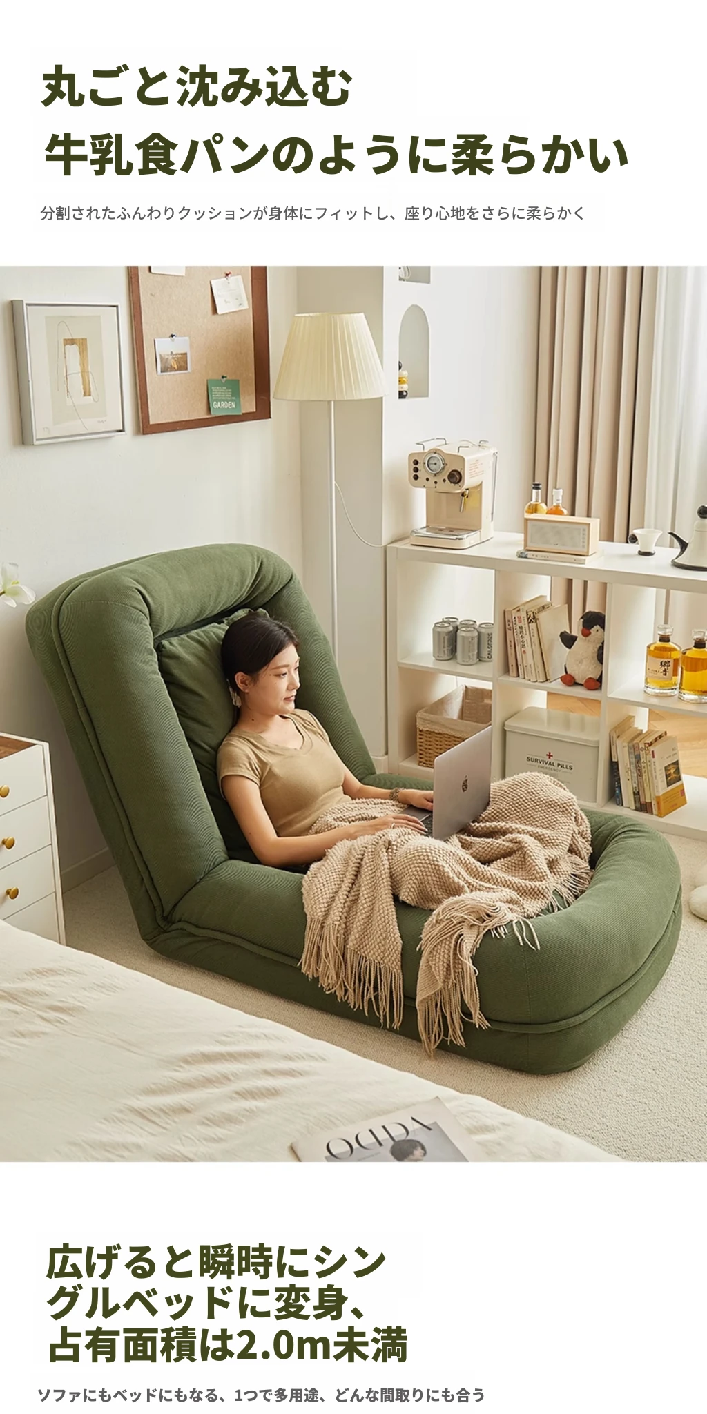 リラックスできるラウンジソファ!寝転んでも眠れる大人用の犬型ハウス、和室スタイルのタタミマット、女性向けシングルサイズ、小さな部屋にぴったりな折りたたみベッド。快適さと便利さを兼ね備えた一品です!