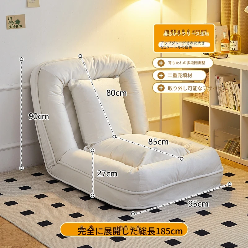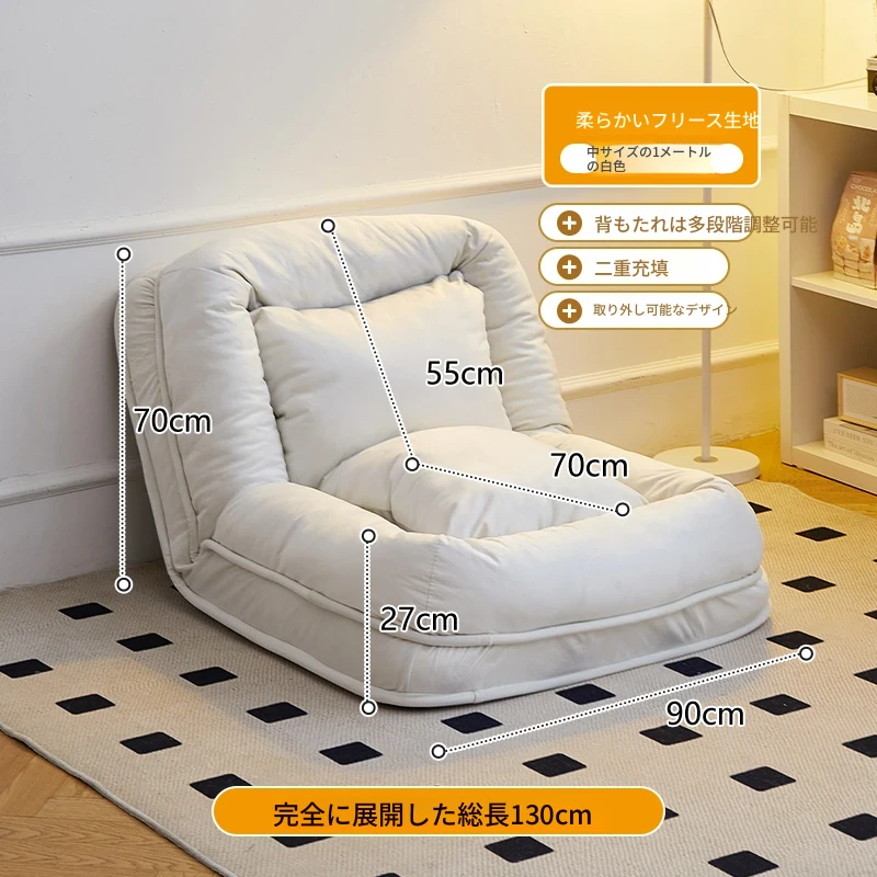 中号-加厚新款【展開130CM*90CM】スエード生地-アイボリー【背もたれ+クッション付き】